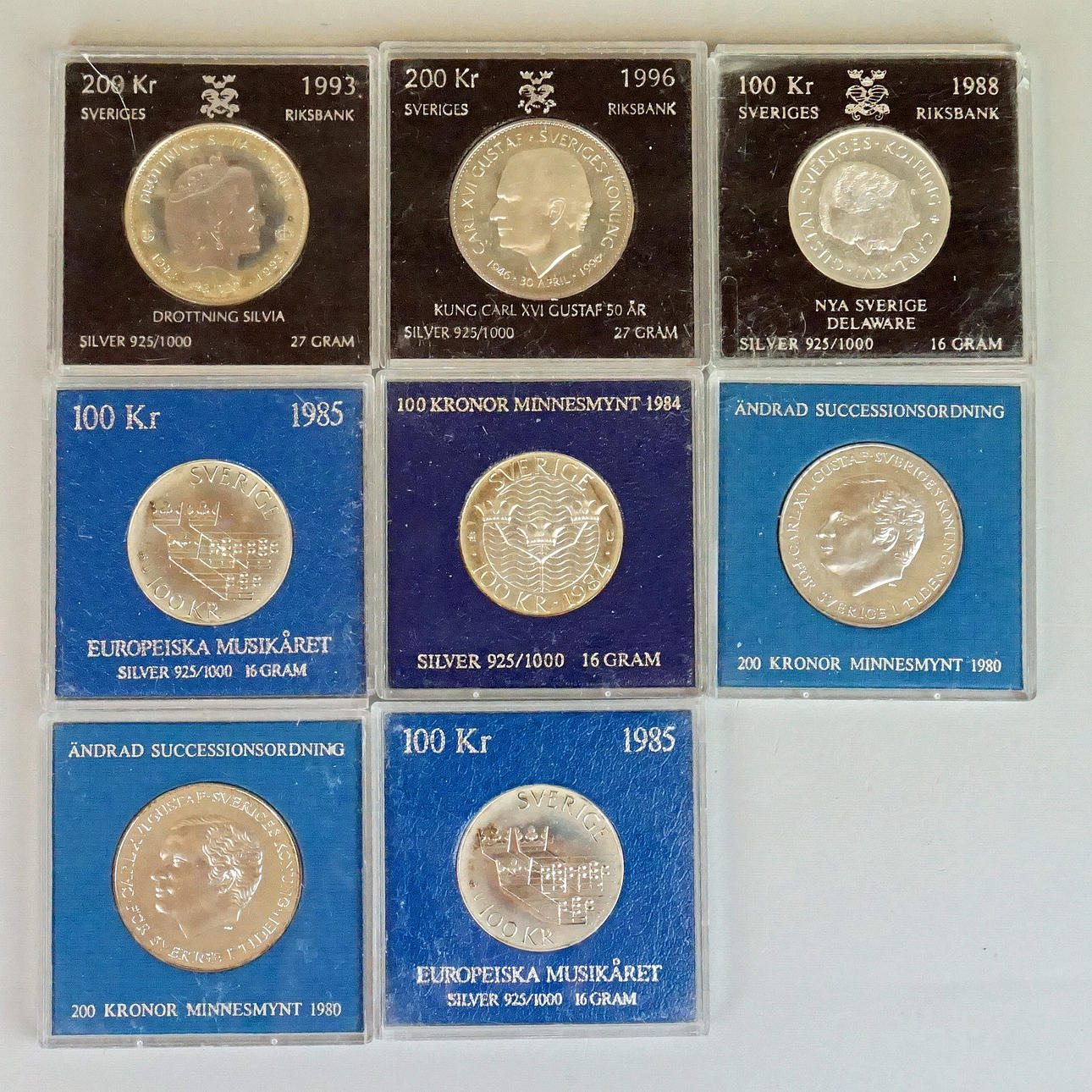 2 st, 200 kr Ändrad successionsordning, 1980, vikt 27 gr styck