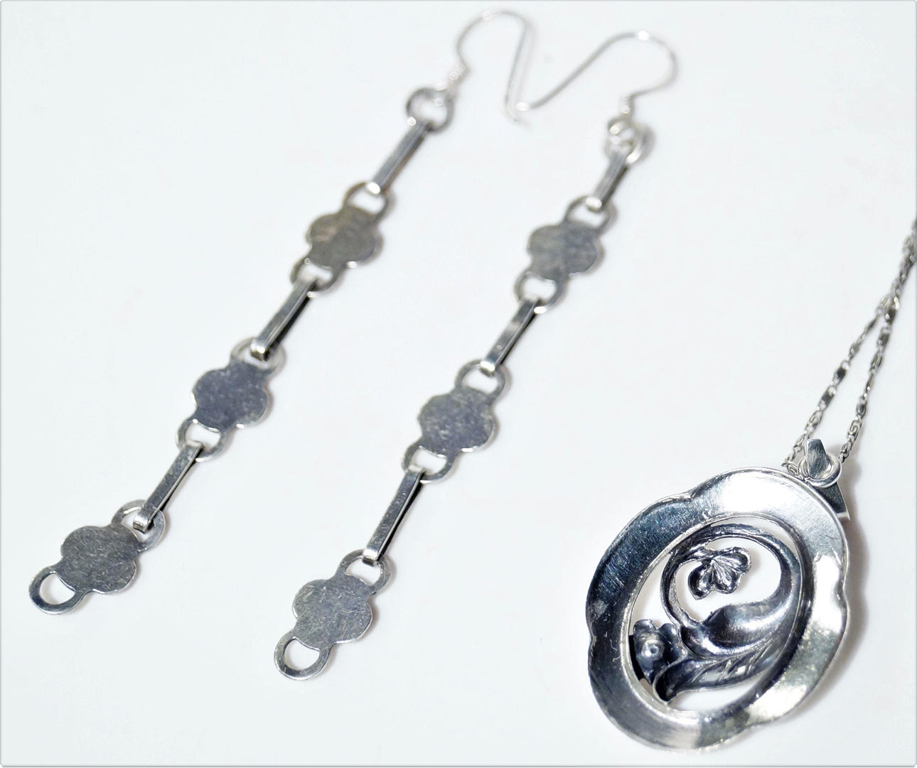 Örhängen, omgjort armband, längd 8.5 cm.