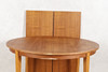 Diameter 110 cm. Höjd 72 cm. Medföljer 2 iläggsskivor på 40 cm vardera.