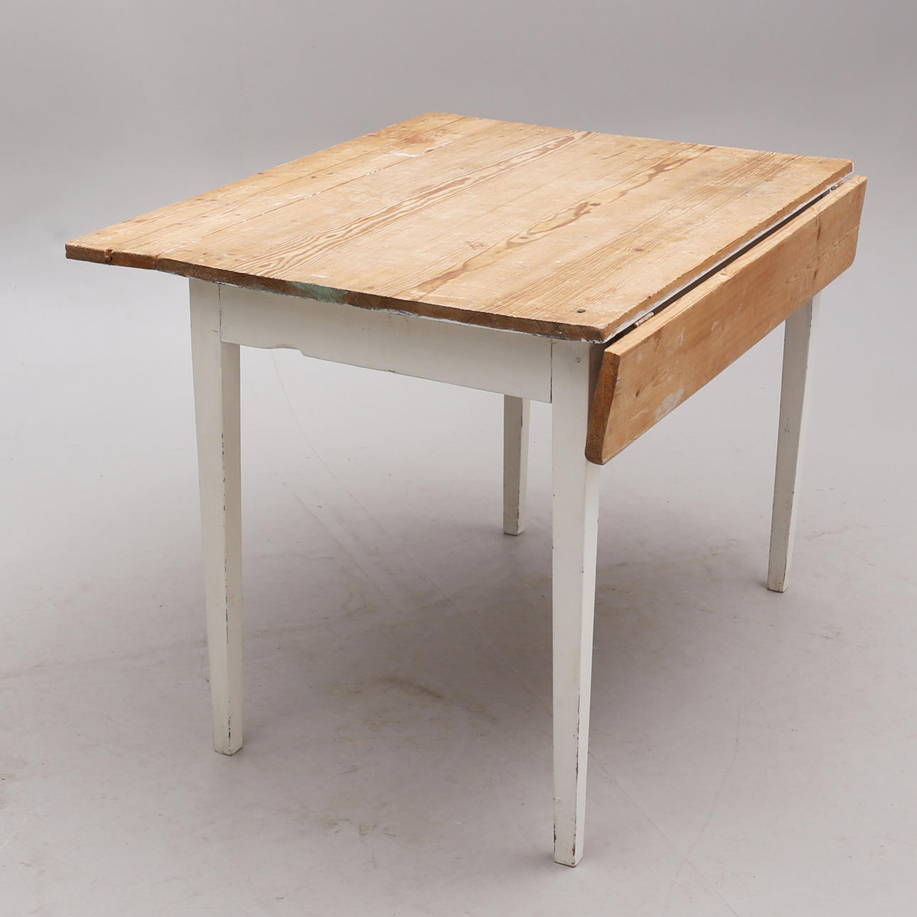 Spricka i klaff. Fläckar, märken. Senare bemålat underrede. Stag till ena klaffen saknas.
