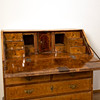 Alm. Sex lådor. Skrivskiva med bakomvarande åtta lådor och mindre skåp. Längd 99, bredd 58, höjd ca 102 cm.