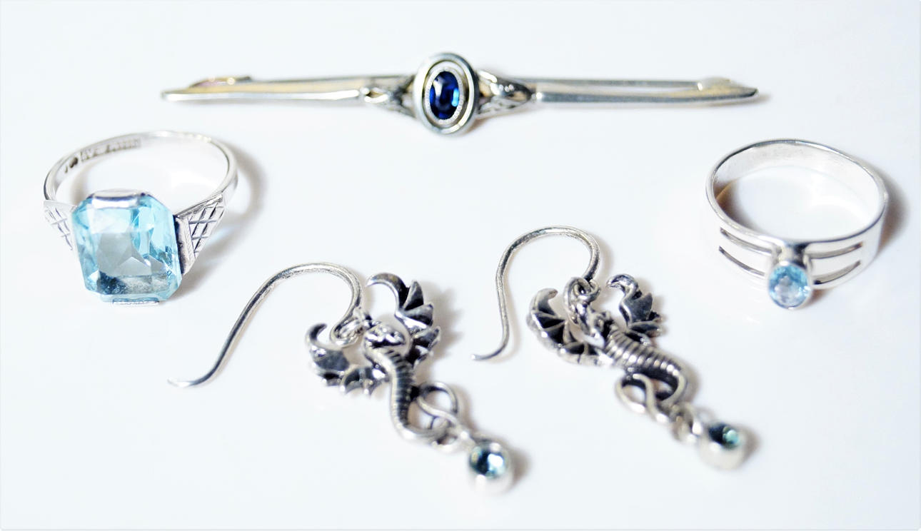 Ring, större blå sten/glas, Nils Widberg, Helsingborg, år 1951, storlek 18.