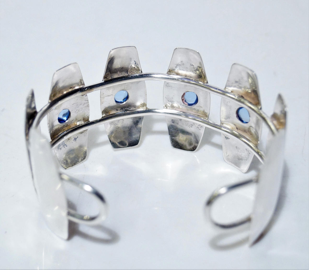 Armband/armring, stenar/glas cabochon, diameter 7 cm, vikt 40.7 gram, testad för silver.
