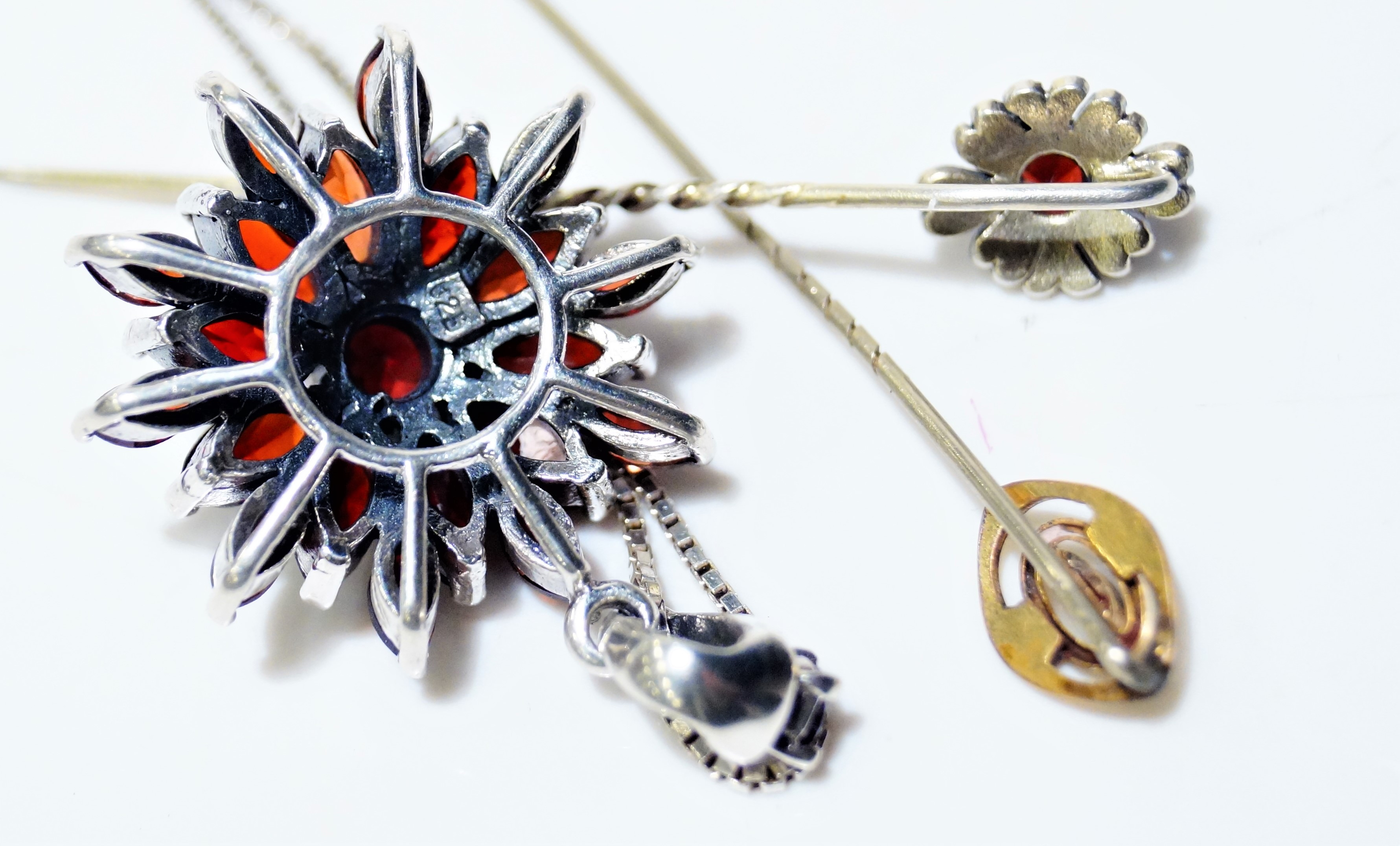 2609216. SMYCKEN, silver, röda stenar.