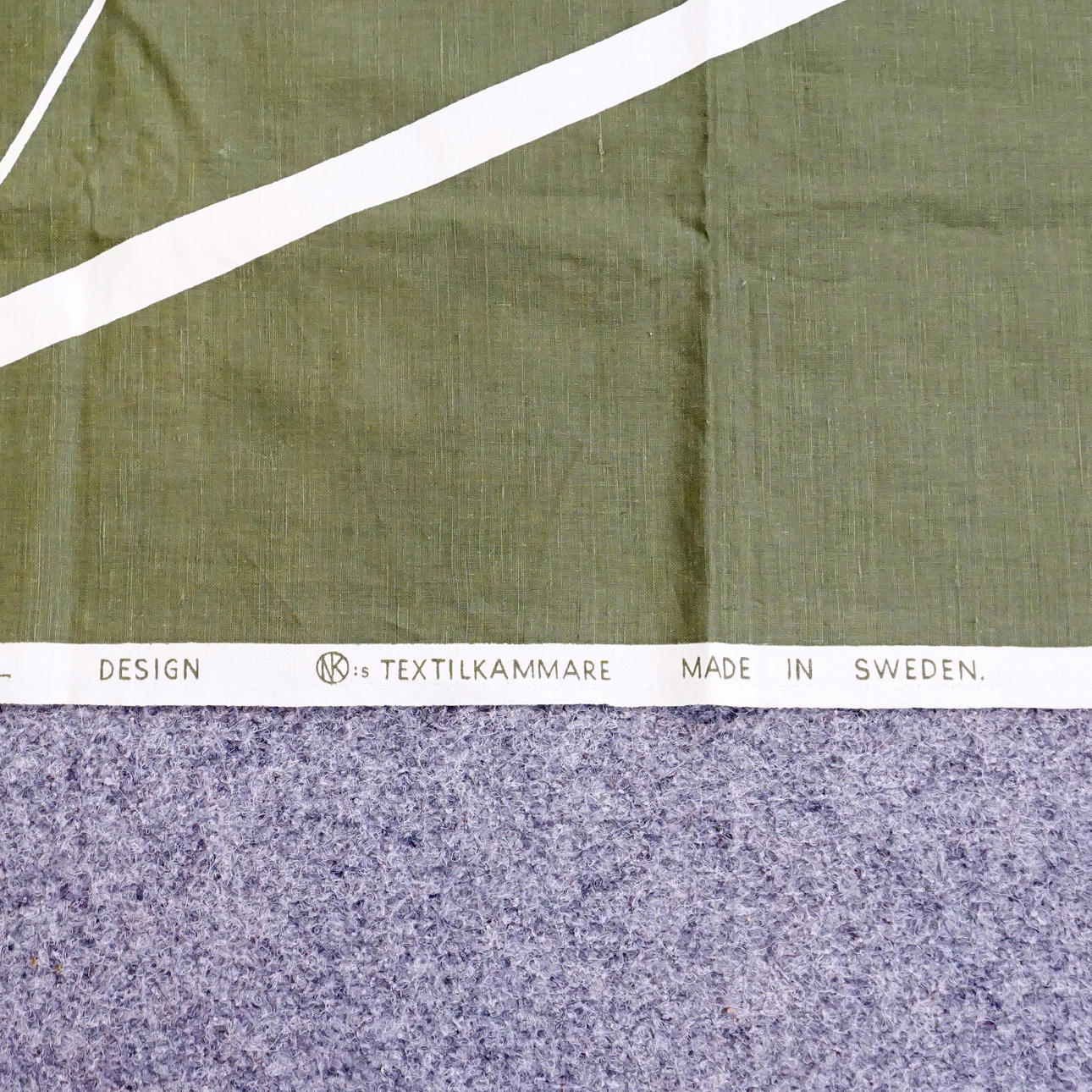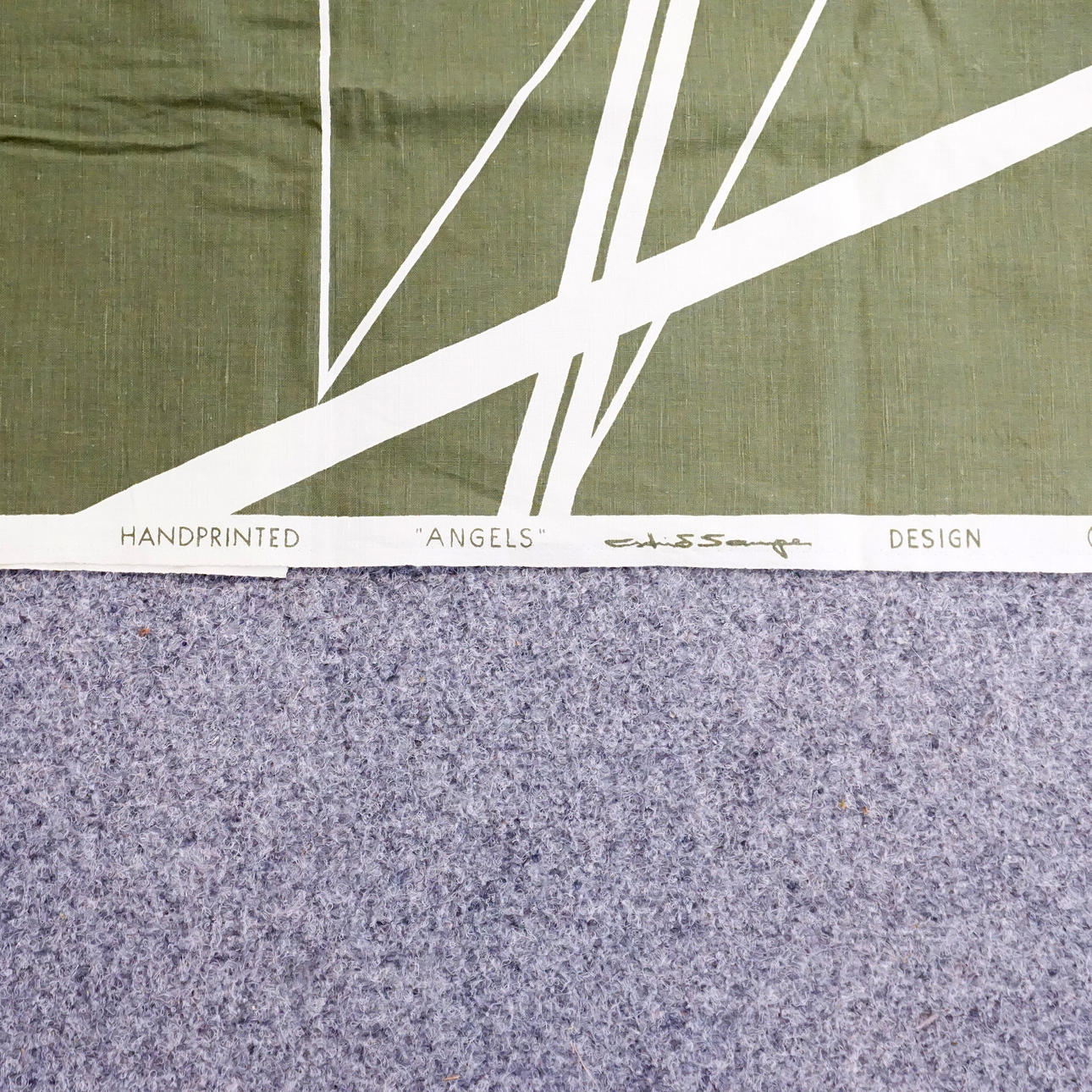 Märkt stadkant "Handprinted "Angels" Astrid Sampe design NK:s textilkammare Made in Sweden".