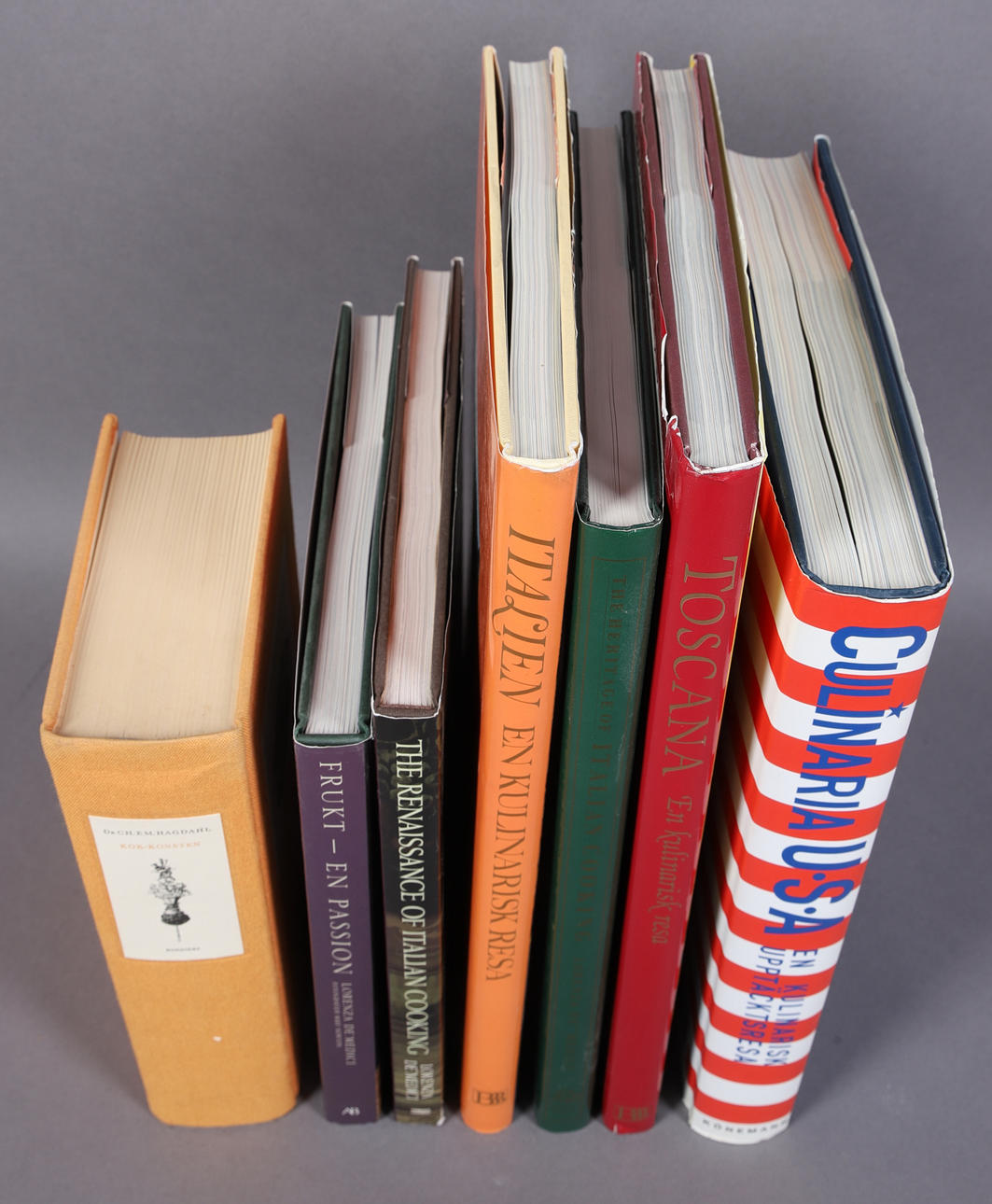 Lorenza de Medici, "The Heritage of Italian Cooking", "The Reneissance of Italian Cooking", "Frukt en passion", "Italien - En kulinarisk resa", "Toscana - En kulinarisk resa", samt "Culinaria USA - en kulinarisk upptäcktsresa".