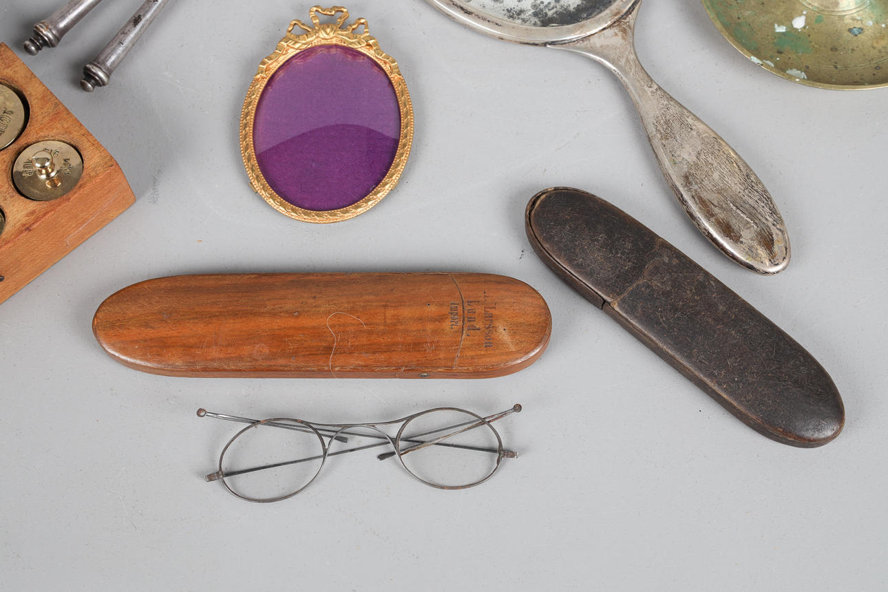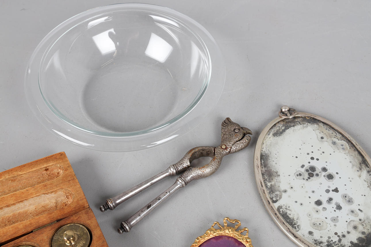 bl a handspegel i silver 1907, höjd 30 cm, viktsats, 14x7 cm, ljusstake, höjd 15 cm, mm.
