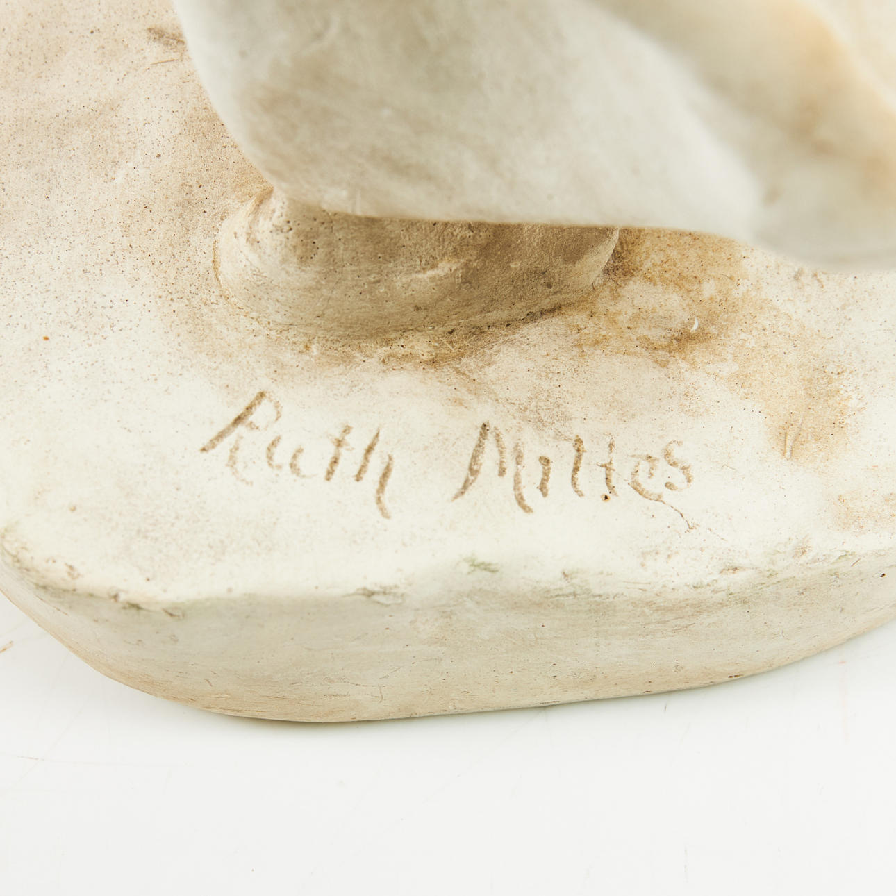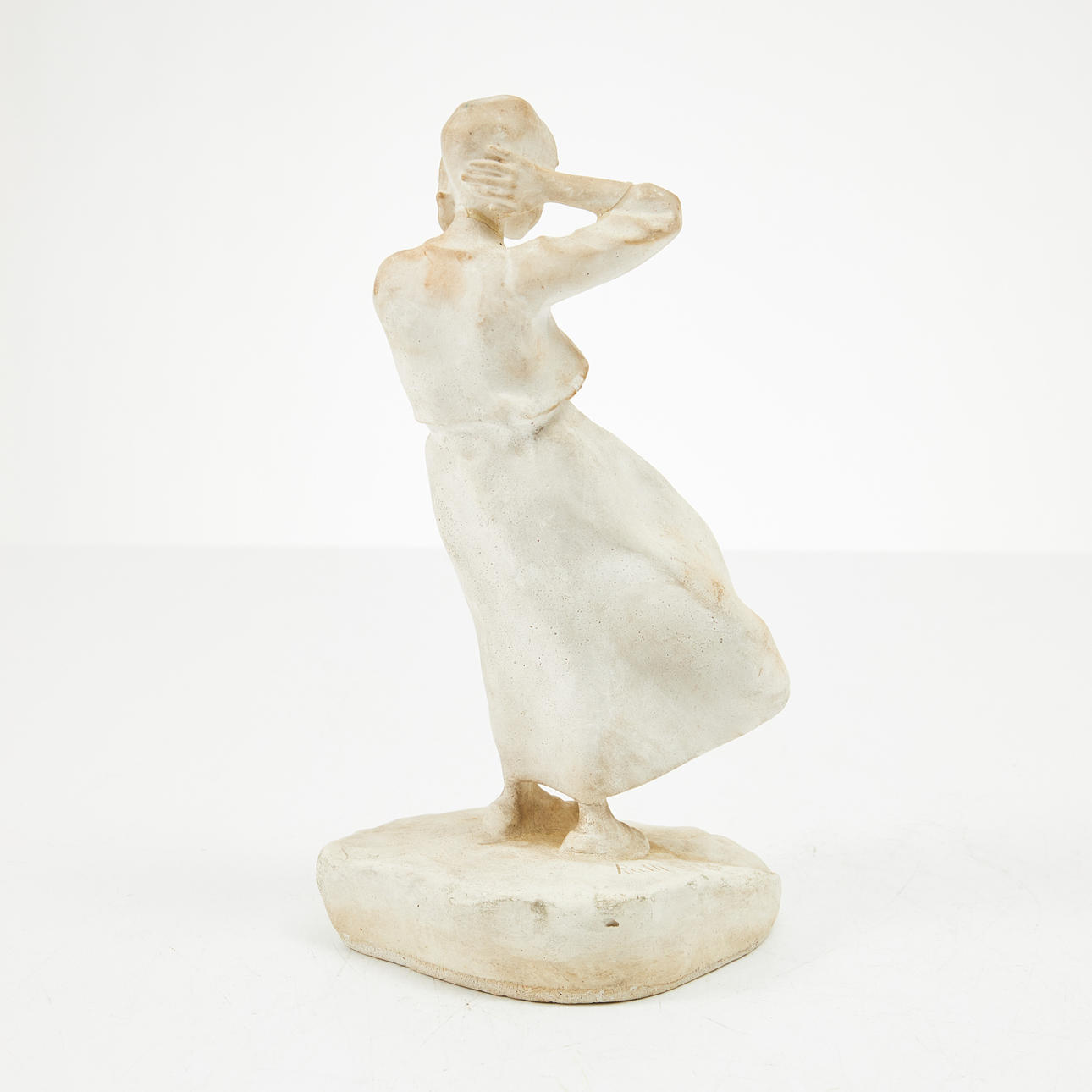 RUTH MILLES. "Flicka i blåst", signerad Ruth Milles, gips.