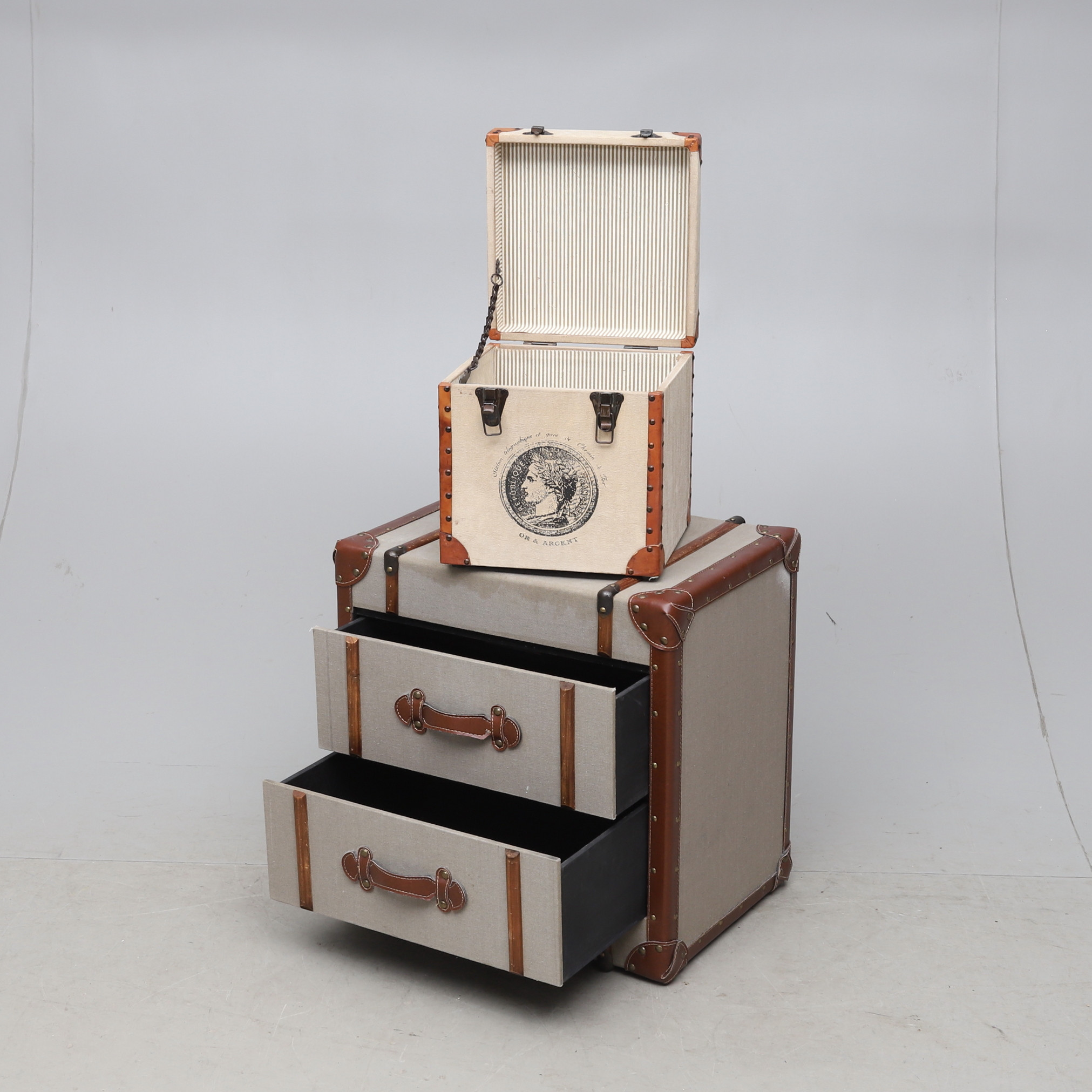 2613183. KOFFERT-/BYRÅ samt FÖRVARINGSBOX, samtida.