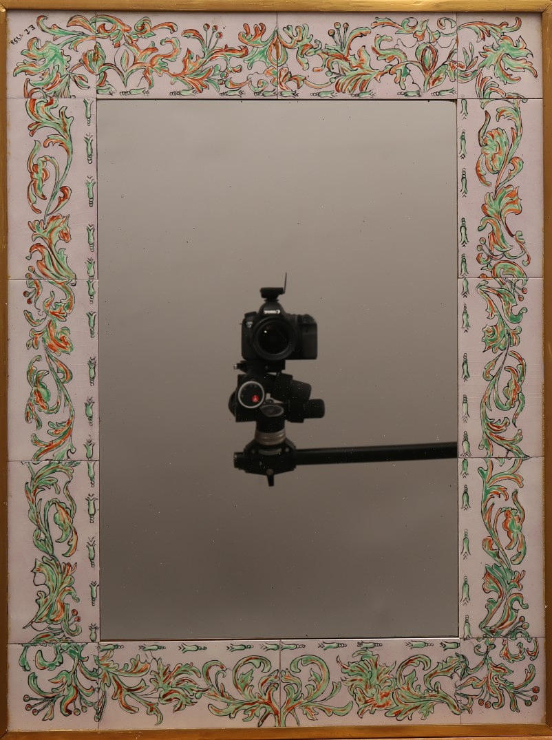 SPEGEL, trä och kakelram, 1900- talets mitt.