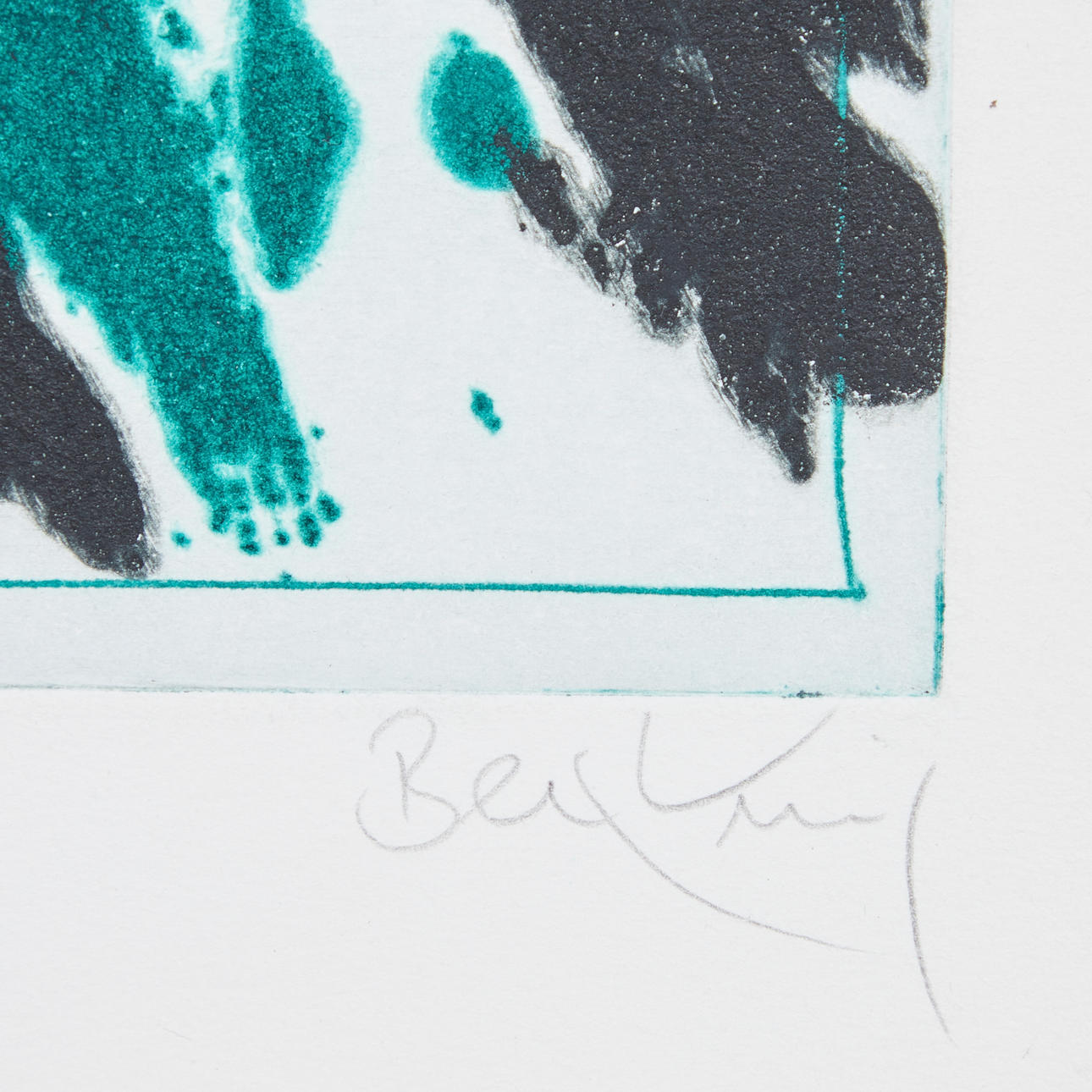 Horst Becking (f. 1939), litografi, utan titel. Abstrakt komposition i grönt och svart, redigerad i bly längst ner till vänster med '35/50' och signerad med blyerts längst ner till höger, 29x22cm.