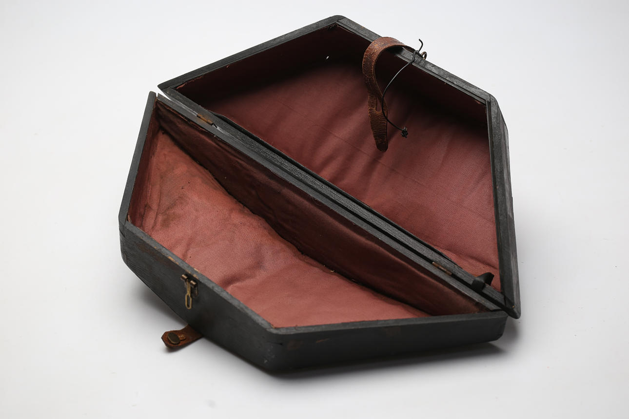 Skador och slitage förekommer på hatt och låda.