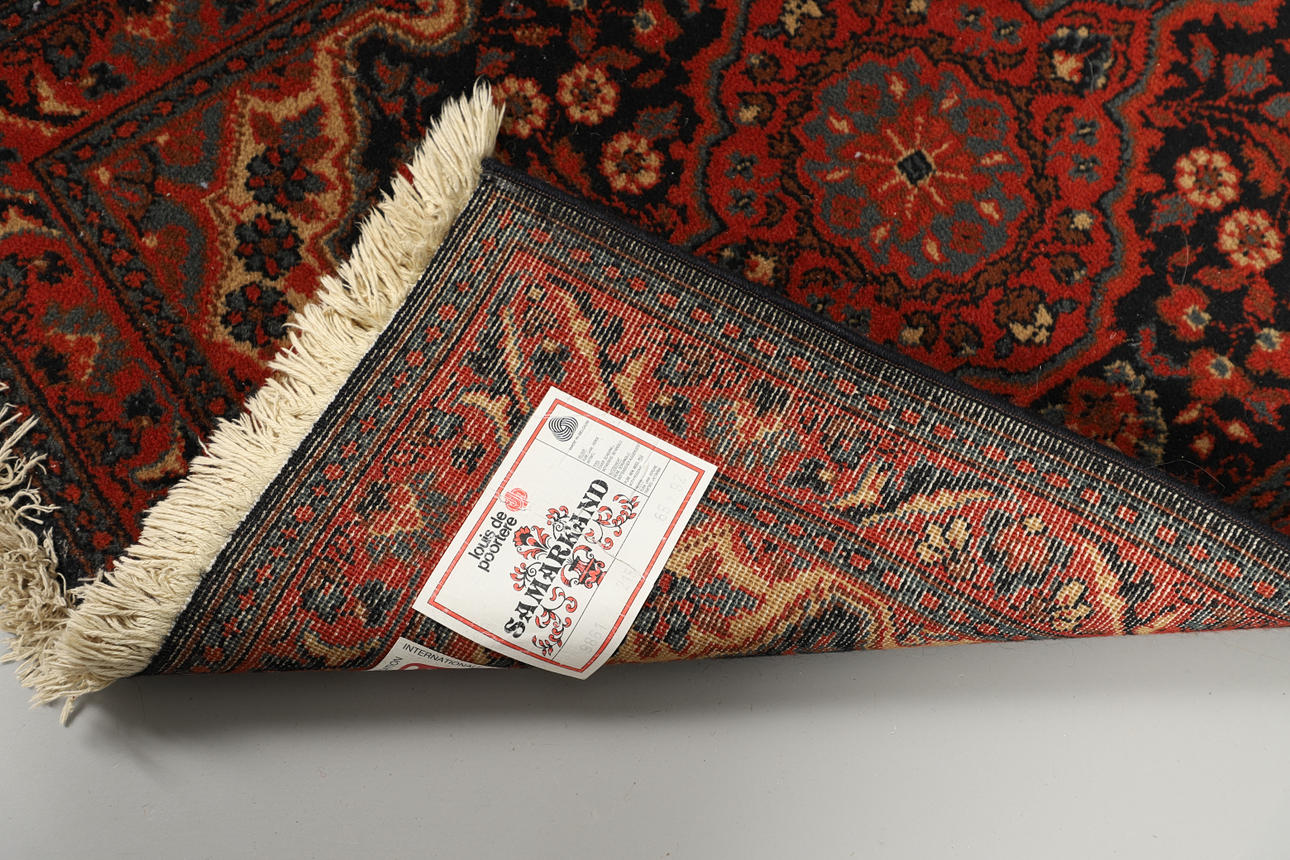 Tre små östliga mattor, ser ut att vara maskintillverkade med tillverkarens etiketter. Liknande mönster, färger och storlekar. (3) 90 cm x 66 cm.