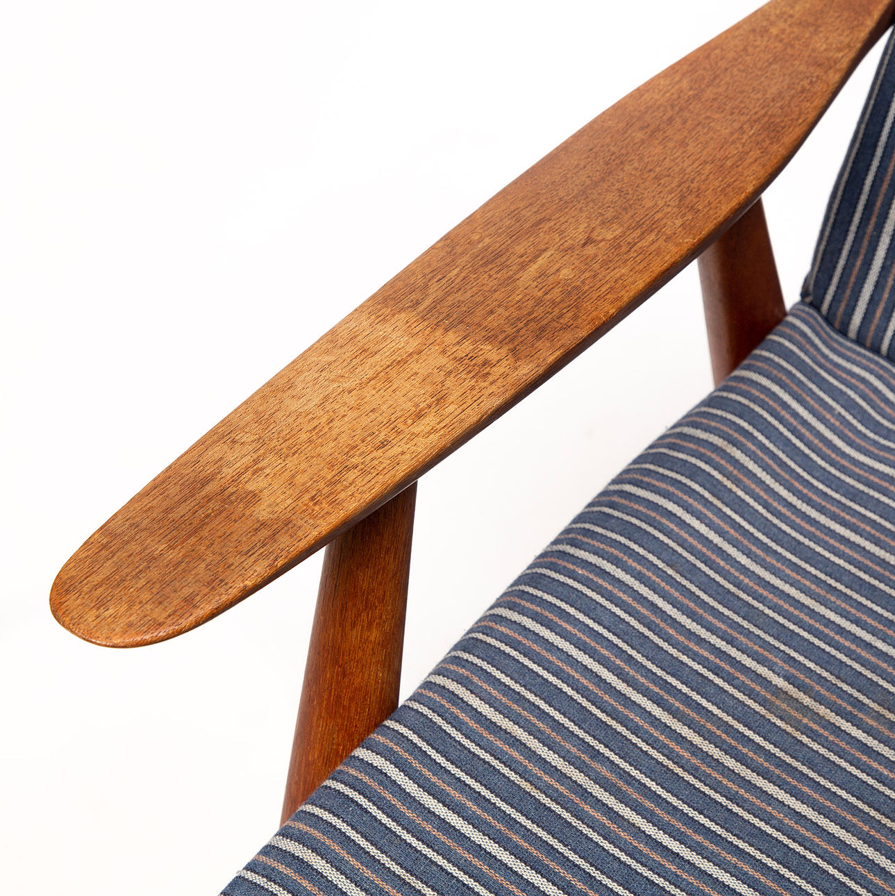 Sedvanligt bruksslitage samt märken och repor på trä och slitningar i klädnad.