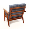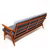 Fåtölj och soffa med träram och klädd sits och rygg.