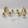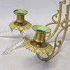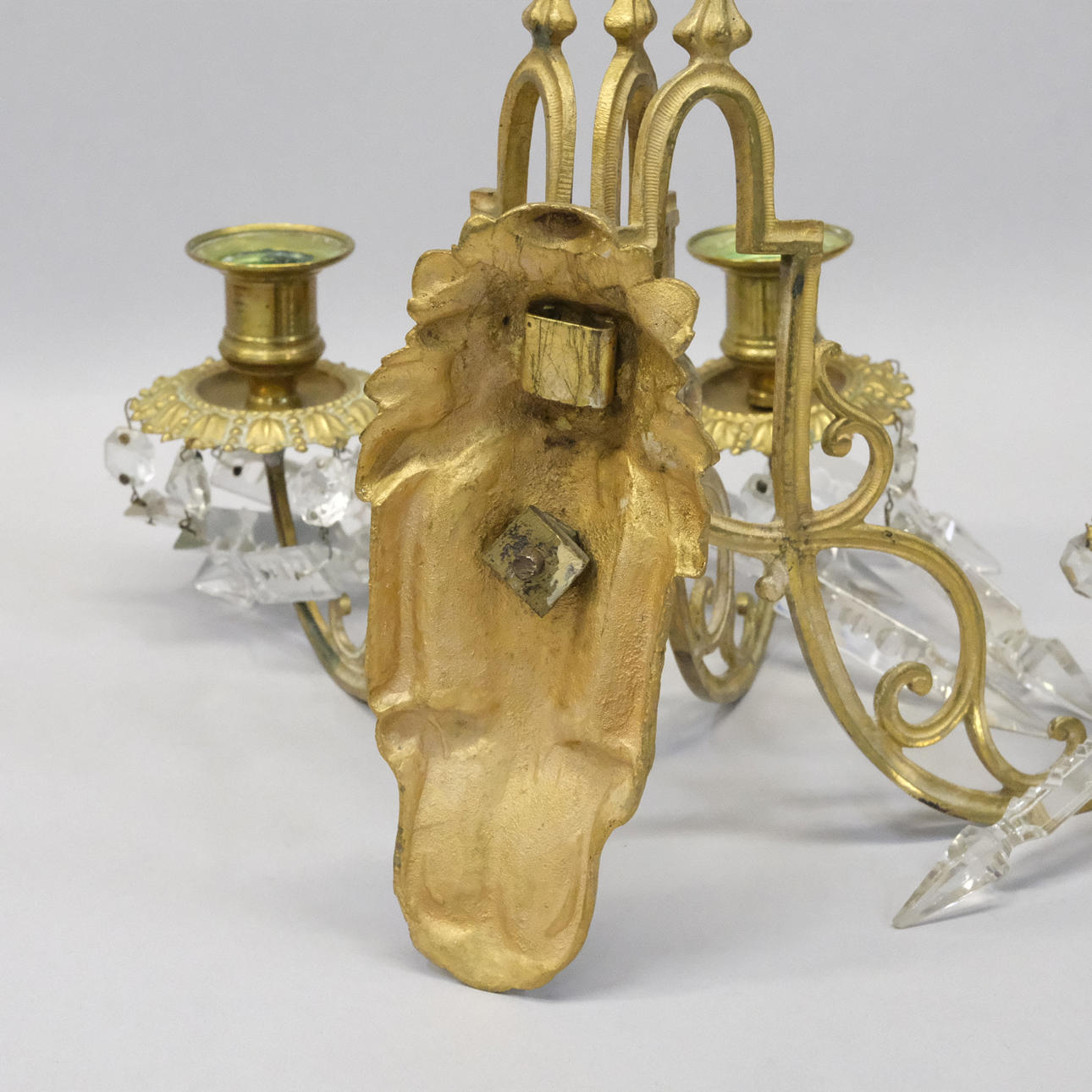 Dekor av lejonhuvud, ljusmanschetter av mässing. Totalt sex ljusarmar med prismor. Höjd 22cm. Längd 32cm.