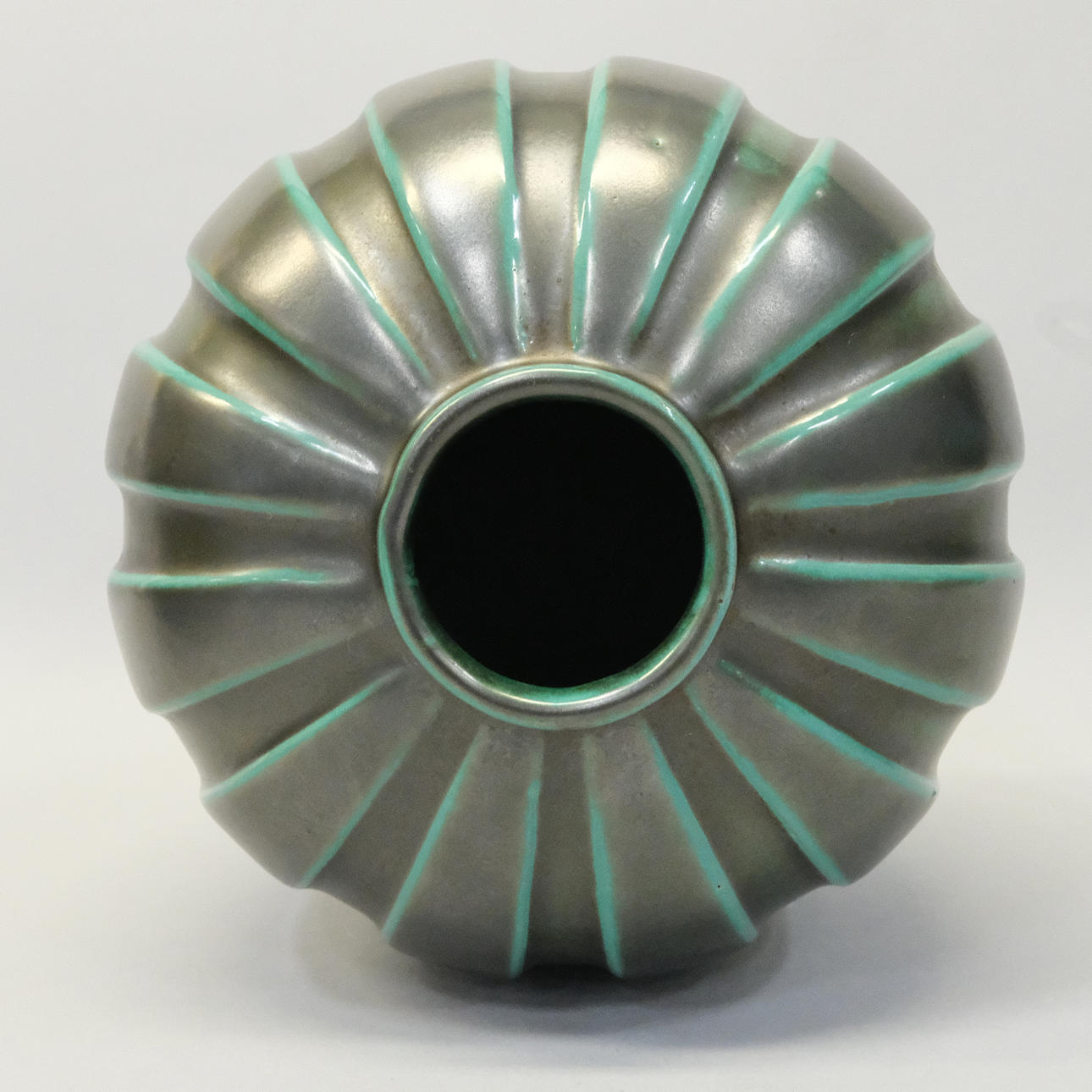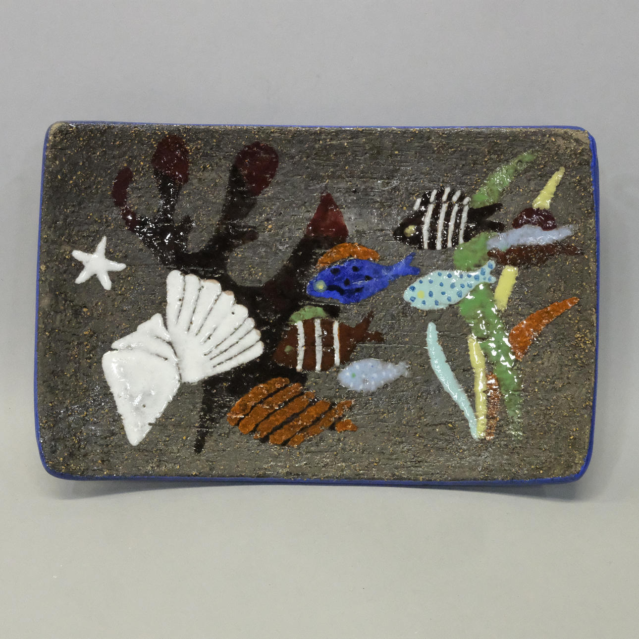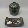Vas med reliefdekor märkt Ekeby 322 samt Anna-Lisa Thomson fat med motiv ur havet, längd 23,5cm.