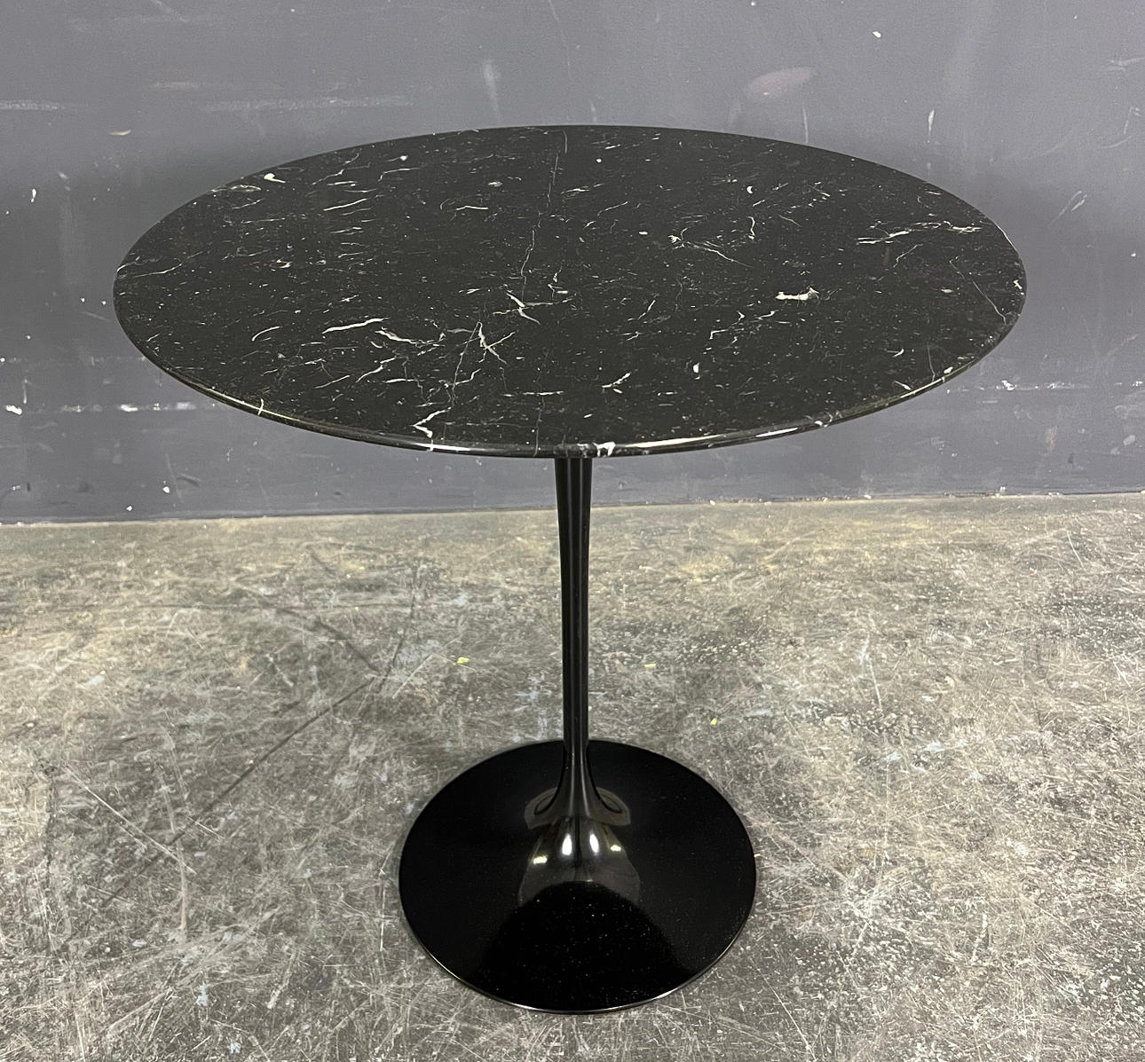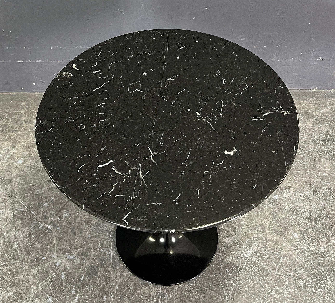 lackerad aluminiumbas, bordsskiva i svart marmor (Nero Marquina)