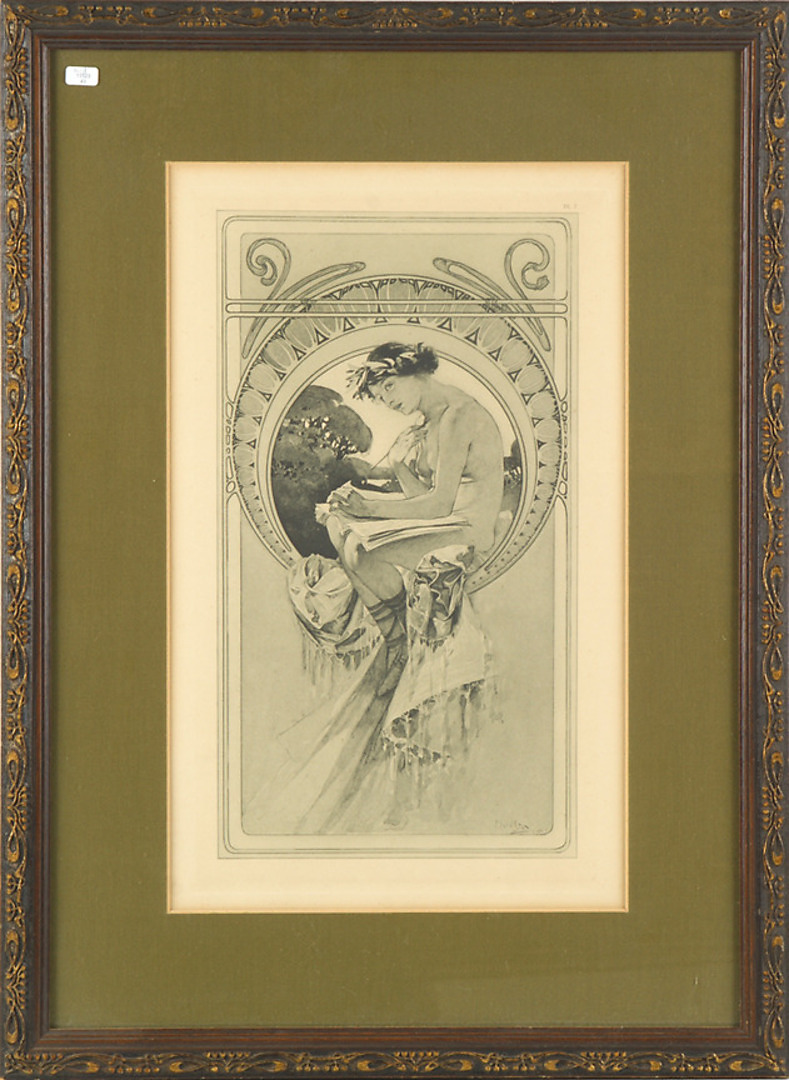 262073. ALPHONSE MUCHA. ”LITOGRAFI PLANCHE 7 DOKUMENT DECORATIFS”. Art Nouveau, yngre inramad.