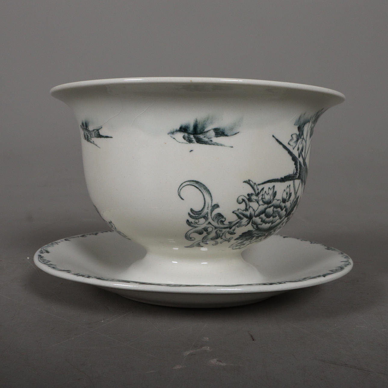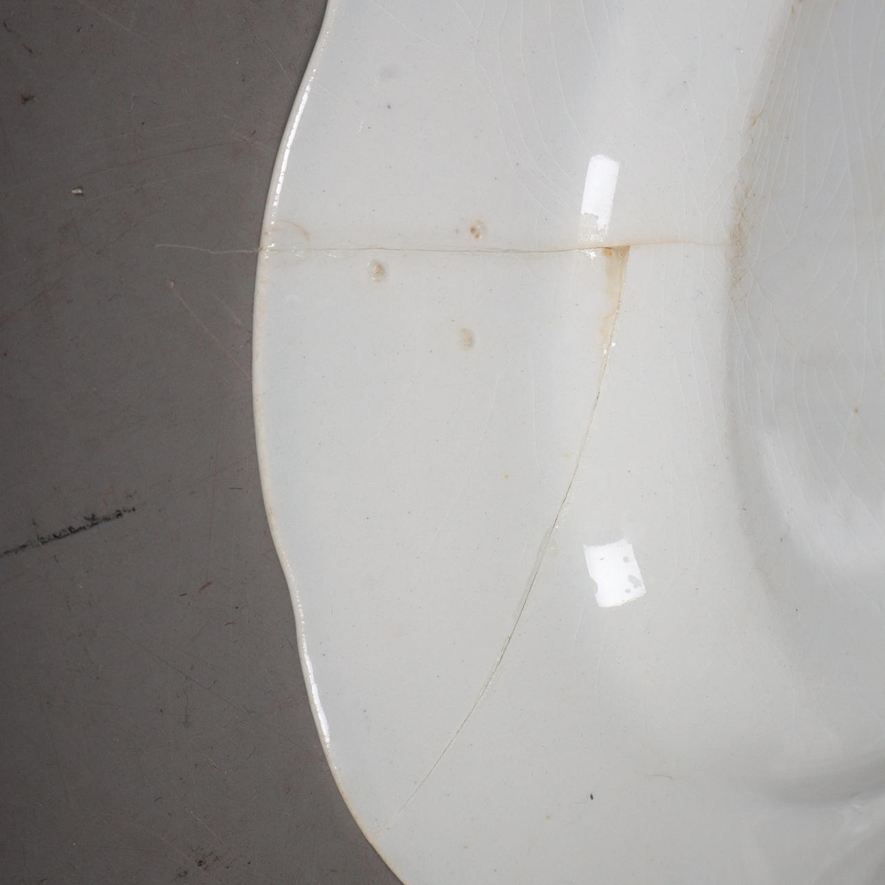 Bruksslitage, 2 fat med sprickor, repor, soppterrin saknar lock, spricka i tallrik.