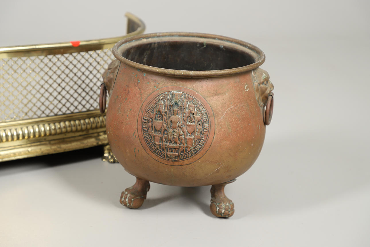 tillsammans med en mässing brandvakt, diameter kittel 25cm.