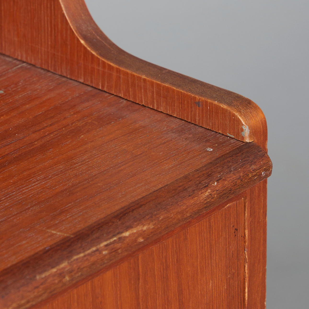 Åldersanpassade tecken på användning och gnidning, mindre repor på platser, hylla med tunga, svarta färgrester, glider lite besvärligt.