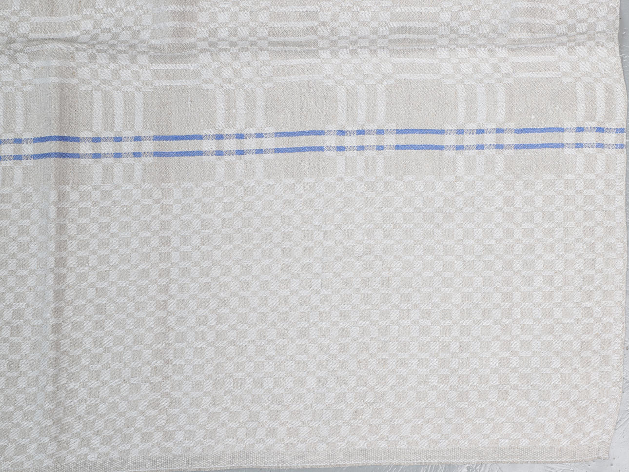 Vit & blårutig duk, 150x152 cm.