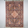 Centermedaljong på blått botten, flerfärdat växtmotiv, 198 x 129 cm.