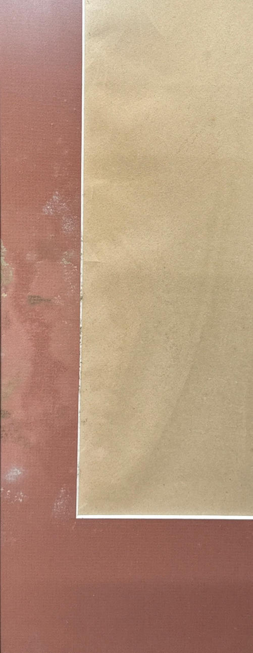 Under glas, ogranskad ur glaserad ram. Vissa skador på gränsen, och skador på glaset i ramen hänvisas till bilder.