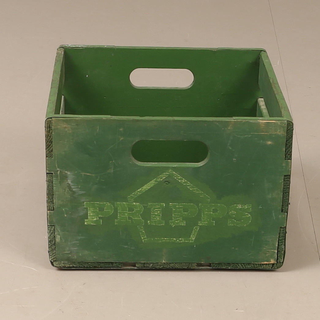 Bruksslitage, färgbortfall, skador. Ena sidan övermålat "Pripps".