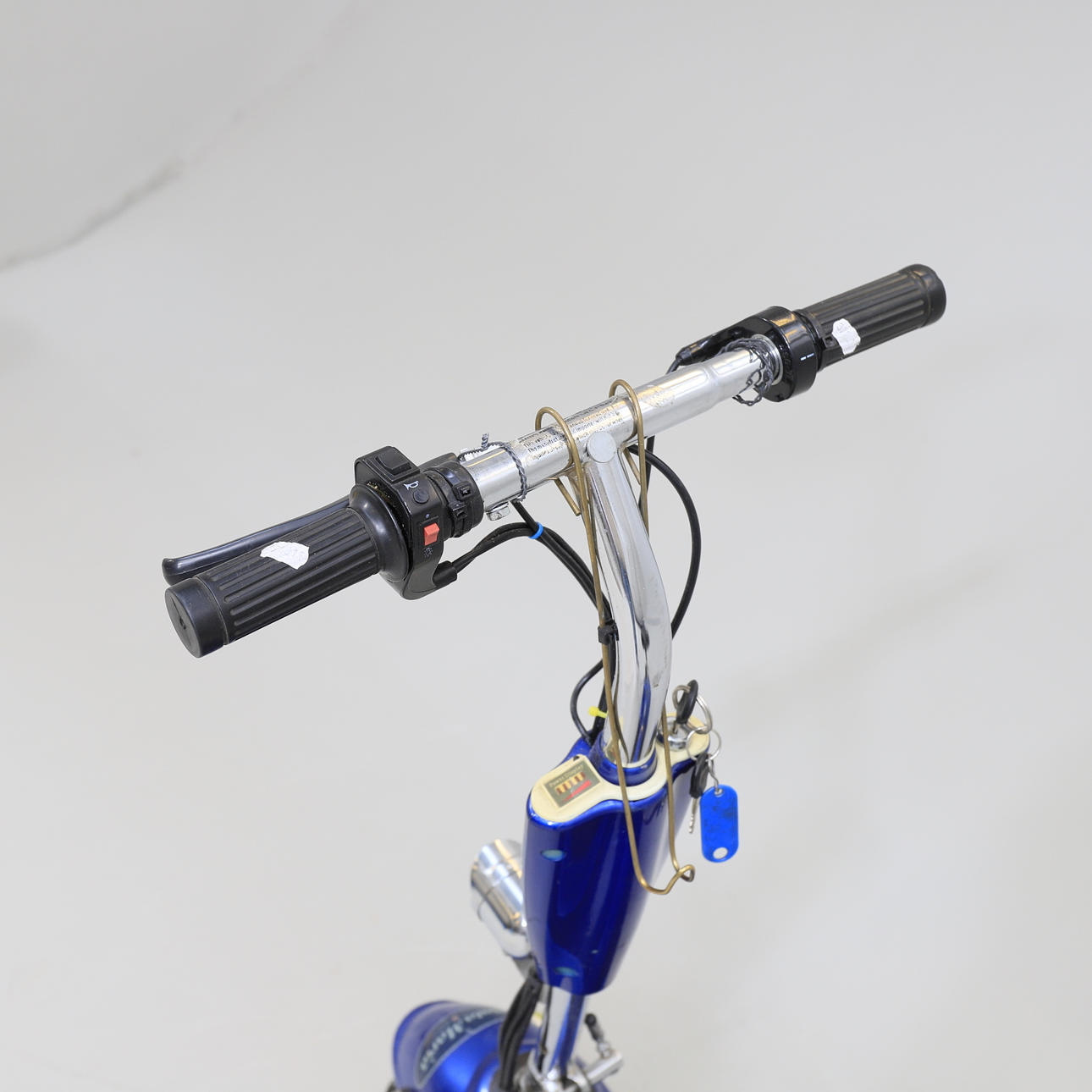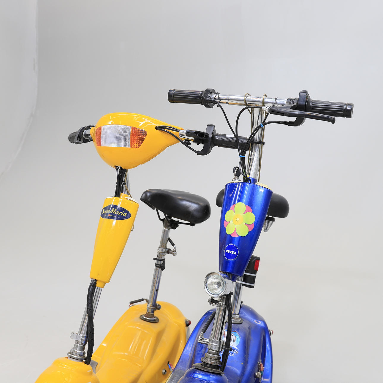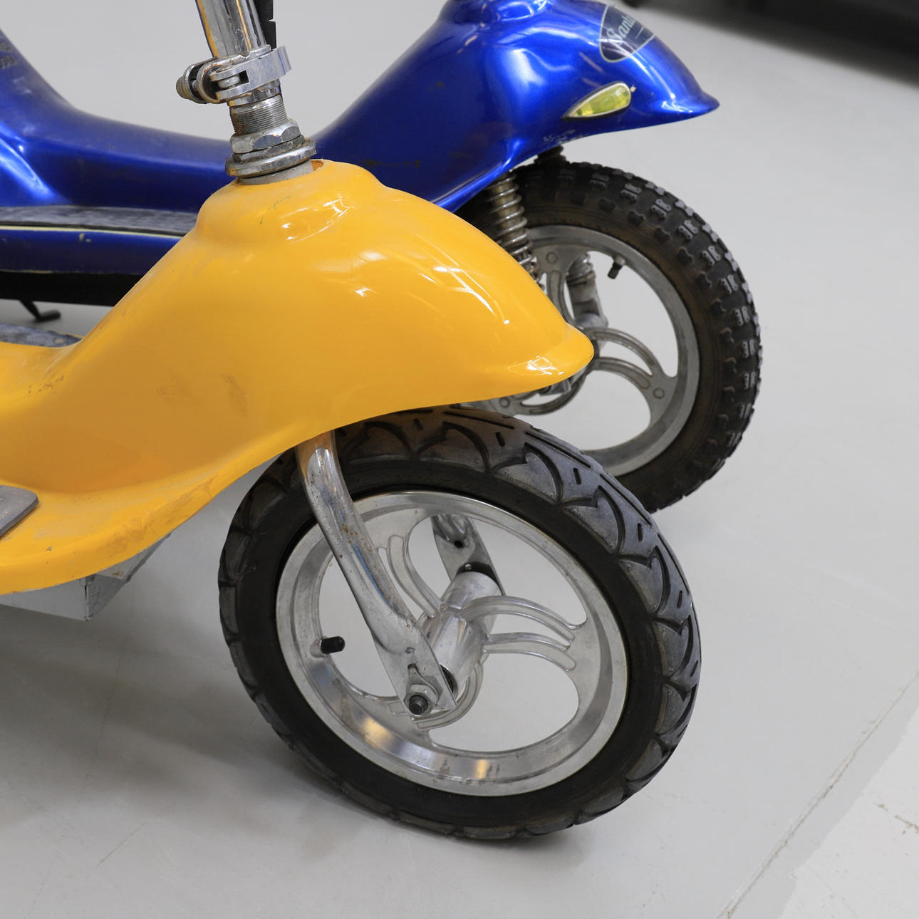 Slitage. Ej fullständigt genomgånget. Den blåa scootern fungerar. Ingen funktionsgaranti lämnas.