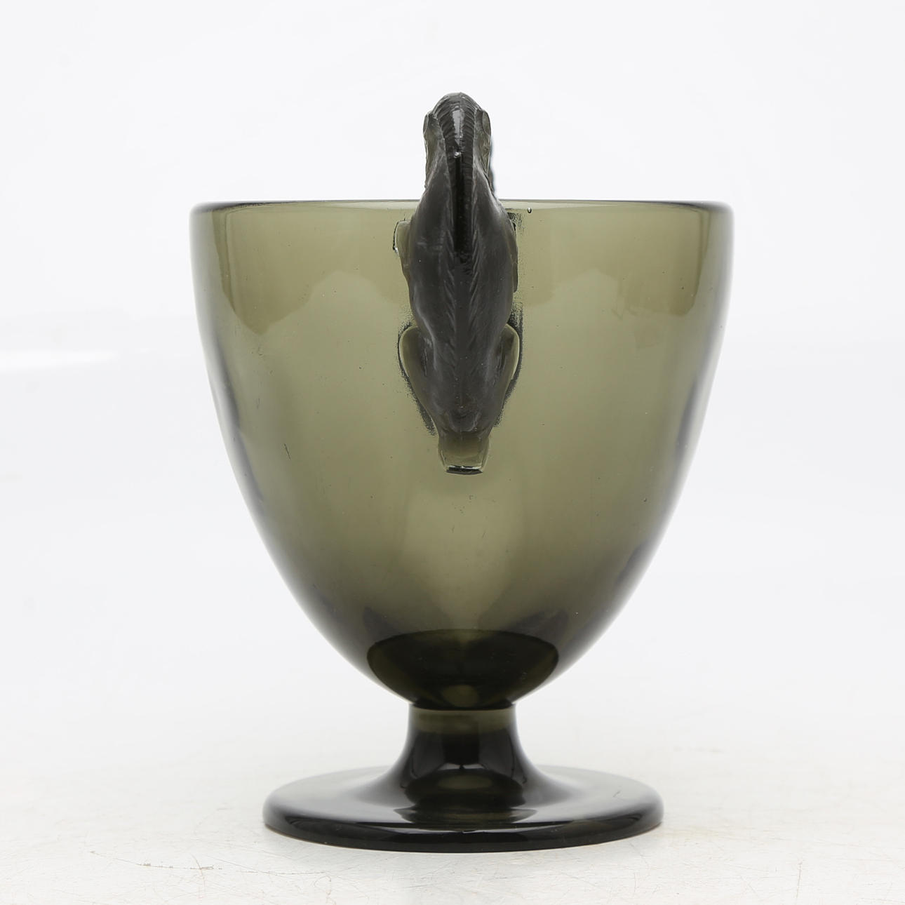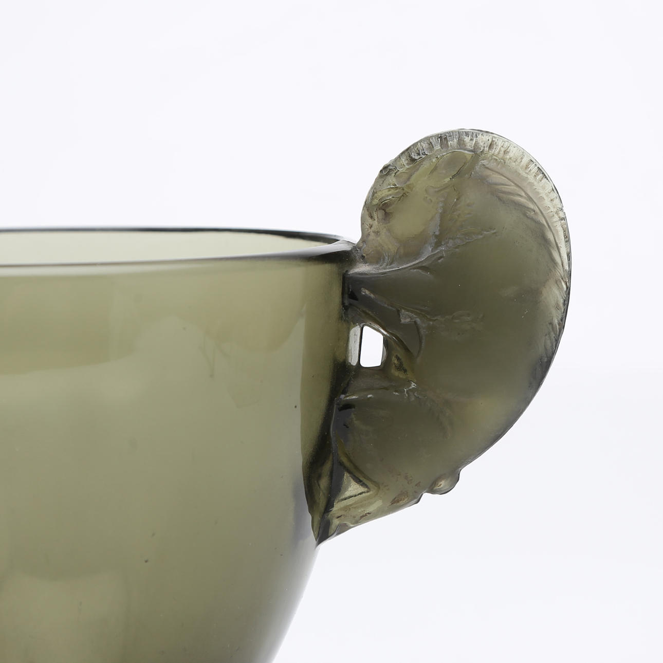 Gjutet och tovigt rökgrått glas. Signerad. Modell skapad 1925. Modell skapad 1920. Graverad signatur ”R. Lalique”