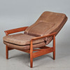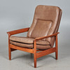 2640578. Fåtölj/solstol, teak, läder, 1970-tal.