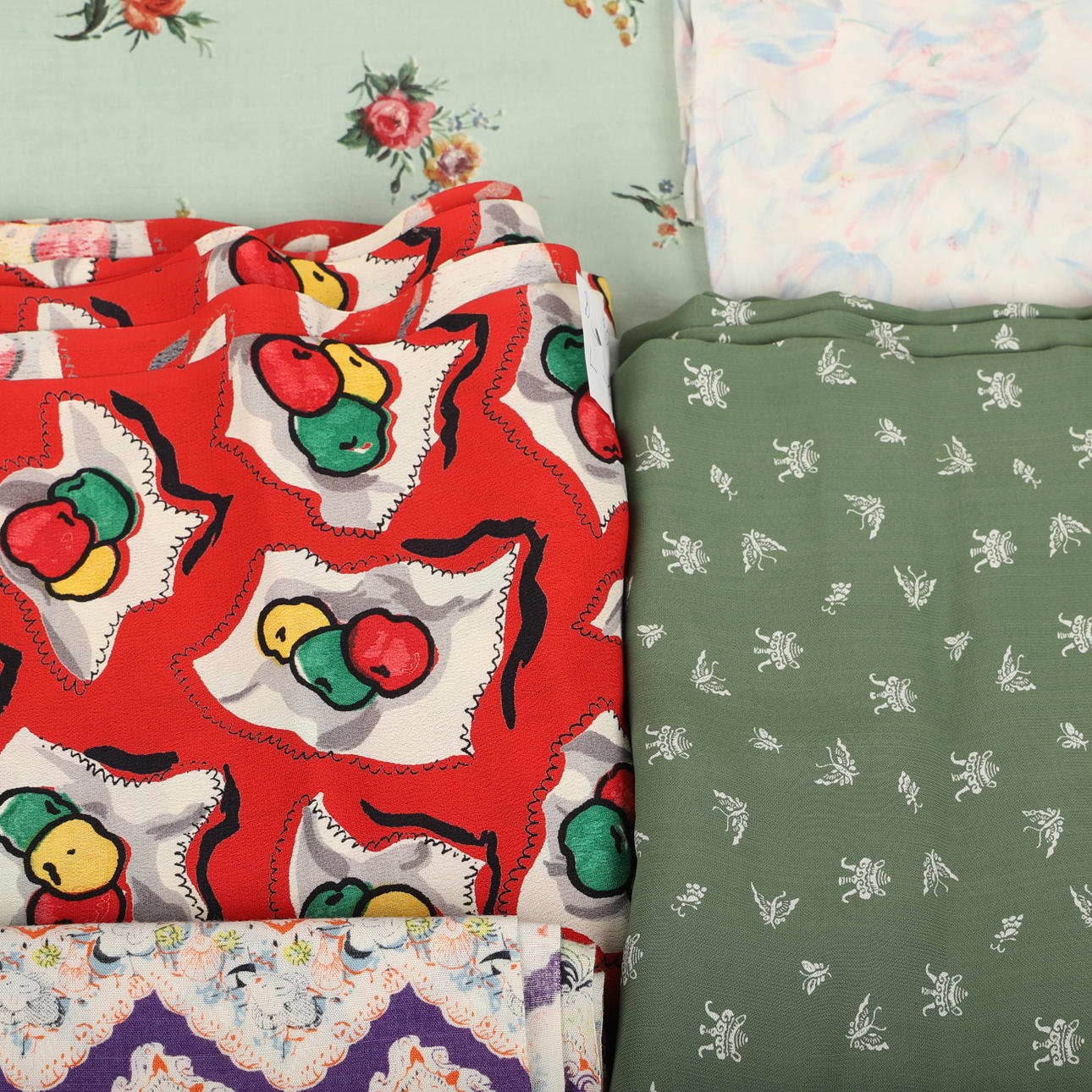KLÄNNINGSTYGER M. M, 9 bitar, 1940-50-tal.