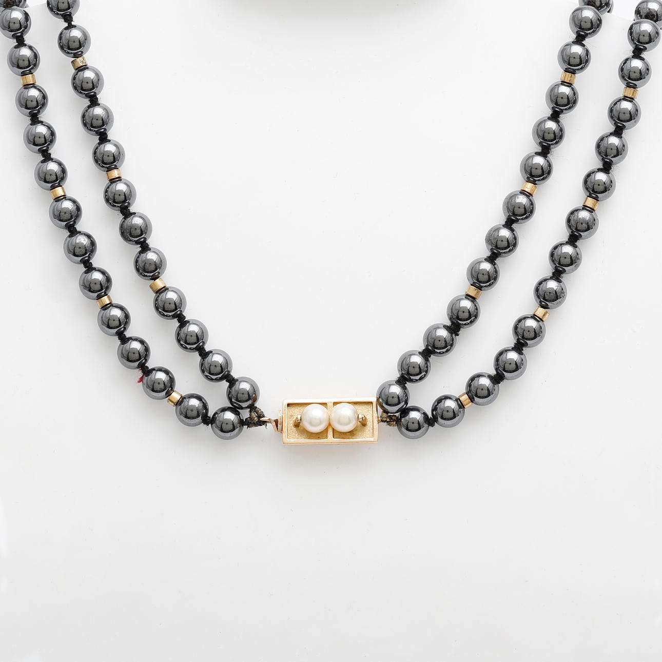 2643449. Tvåradigt halsband av hematit pärlor.