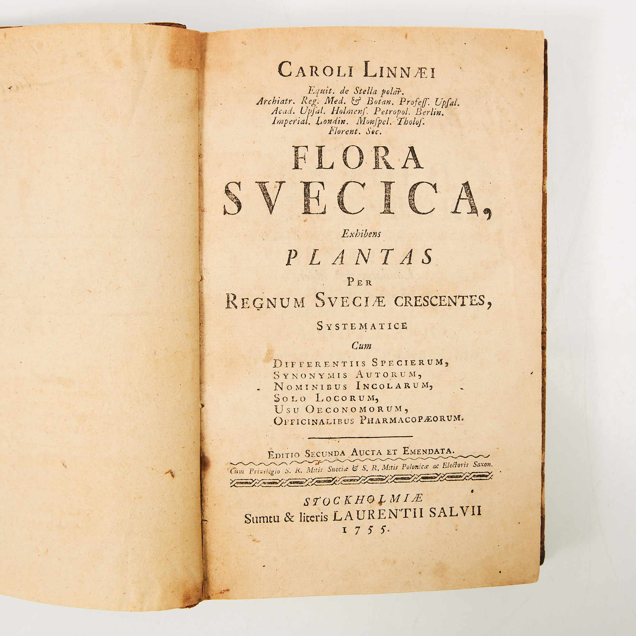 2644103. LINNAEUS'S FLORA SVECICA, 1755.