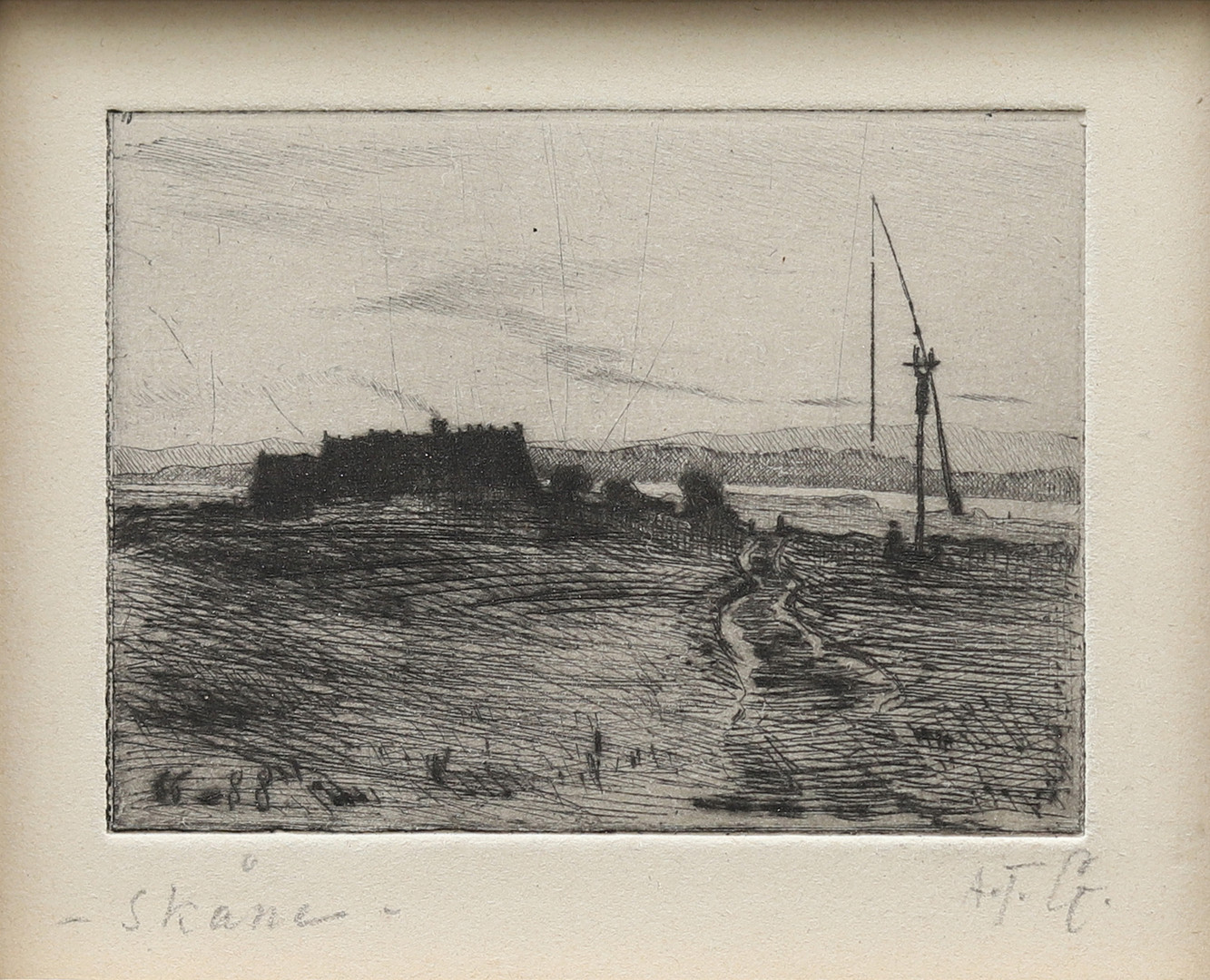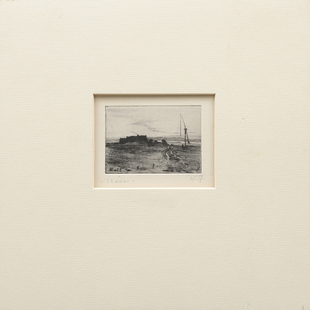 2646508. OIDENTIFIERAD KONSTNÄR. "Skåne", torrnål, signerad.