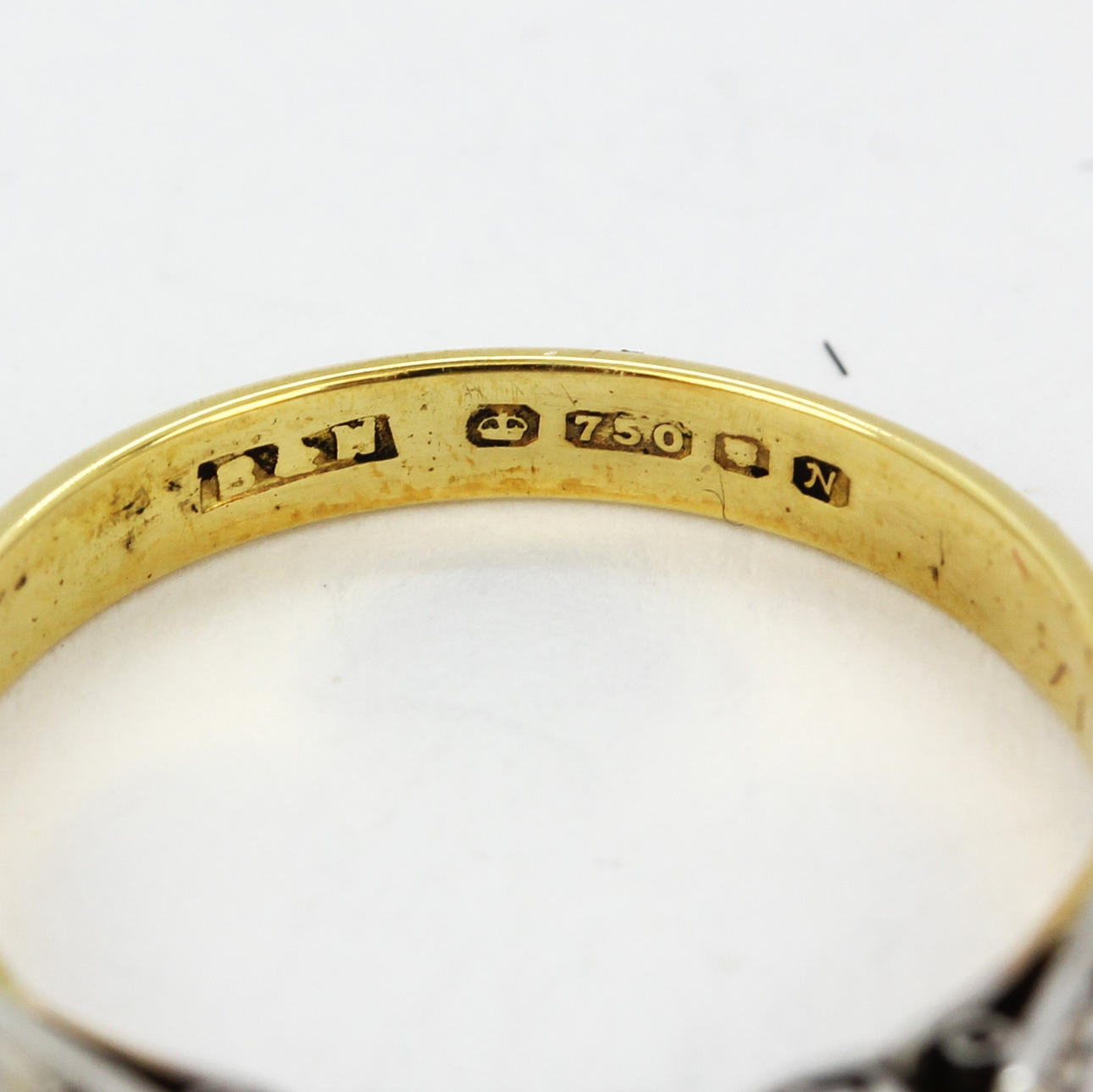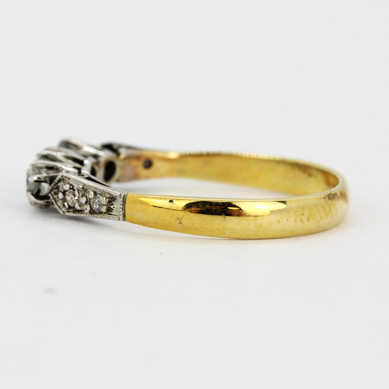 18 KARAT GULD TRE DIAMANT STEN RING.