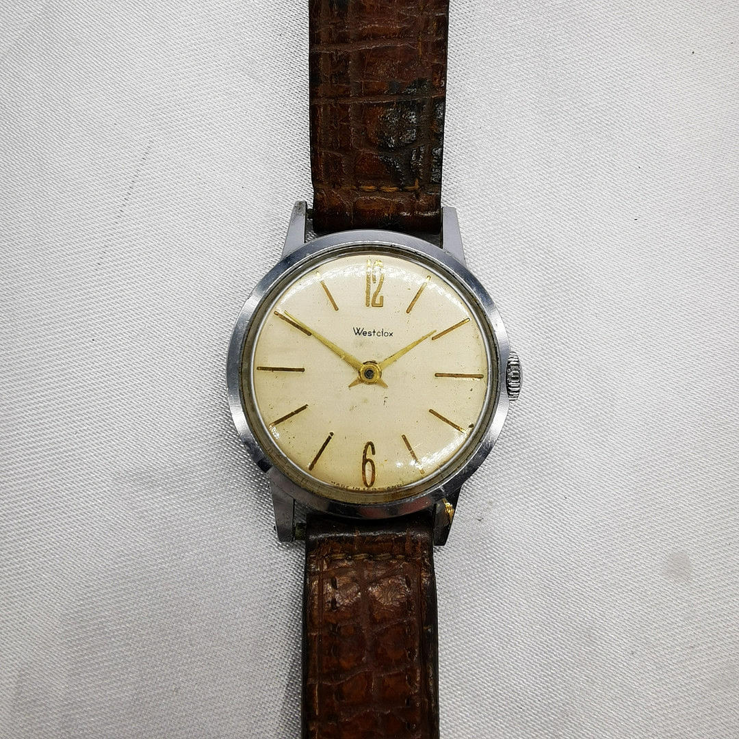 Den första klockan är tillverkad av Westclox, tillverkad i Skottland och levereras med ett äkta läderband.