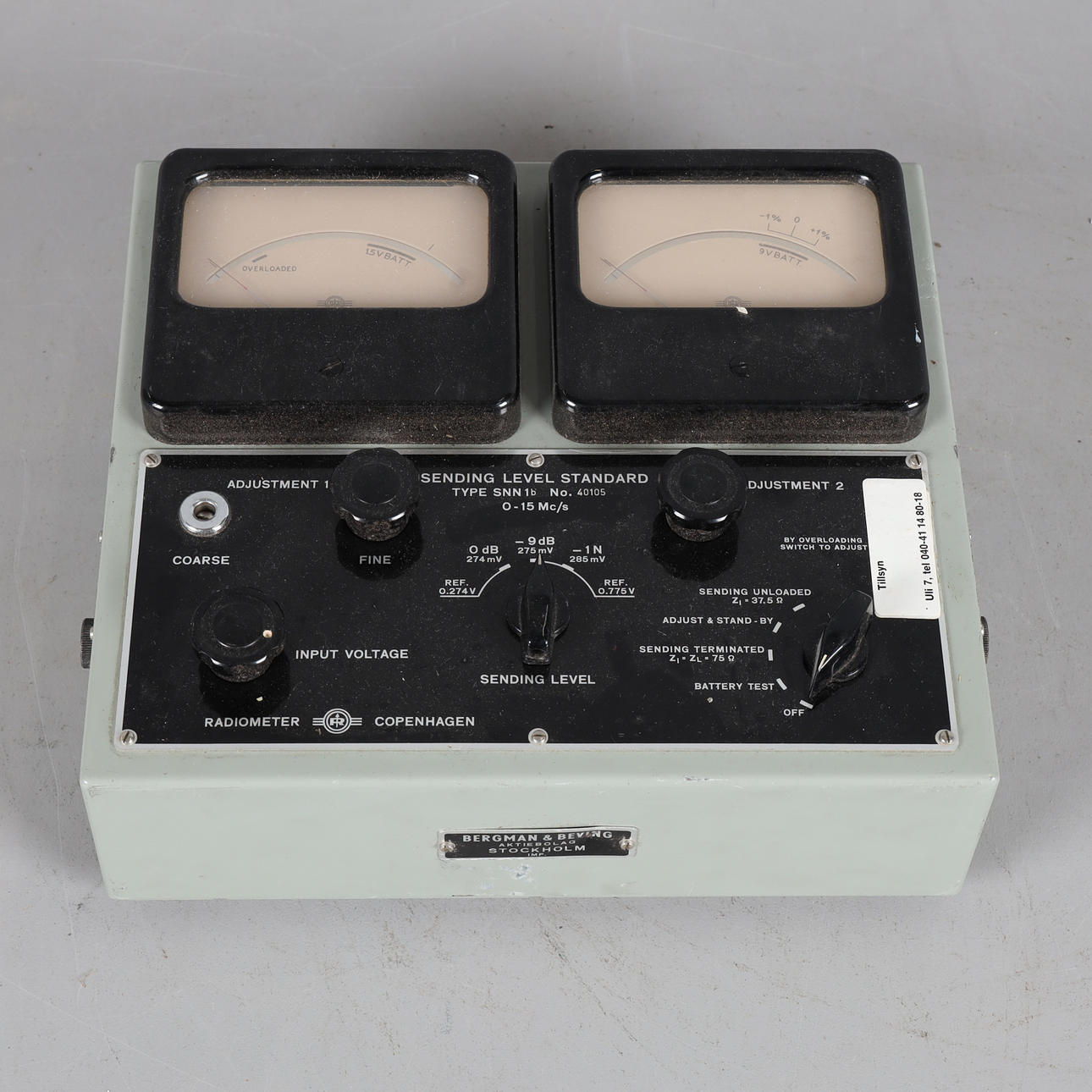INSTRUMENT, "Sending level standard", Radiometer / Copenhagen, Danmark, omkring 1900-talets mitt.