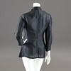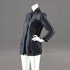 jacka / skjortblus i svart organza, troligtvis i siden och ull. Utanpåliggande fickor. Knäppes fram med knappar. Rygglängd ca 76 cm. Bystvidd ca 93 cm.