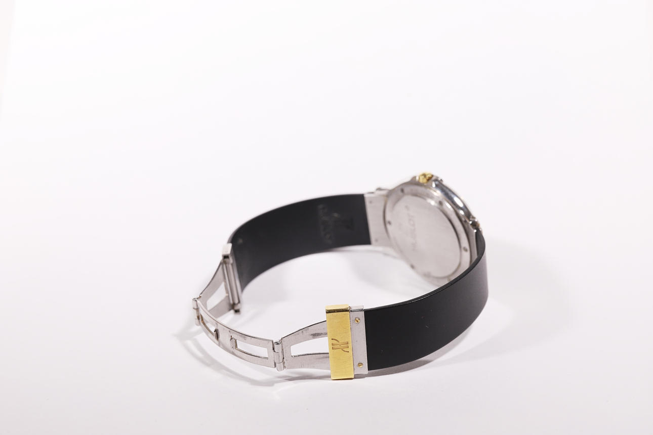 HUBLOT KLASSISK STÅL OCH GULD KLOCKA FÖR MÄN. GUMMIBAND.
