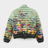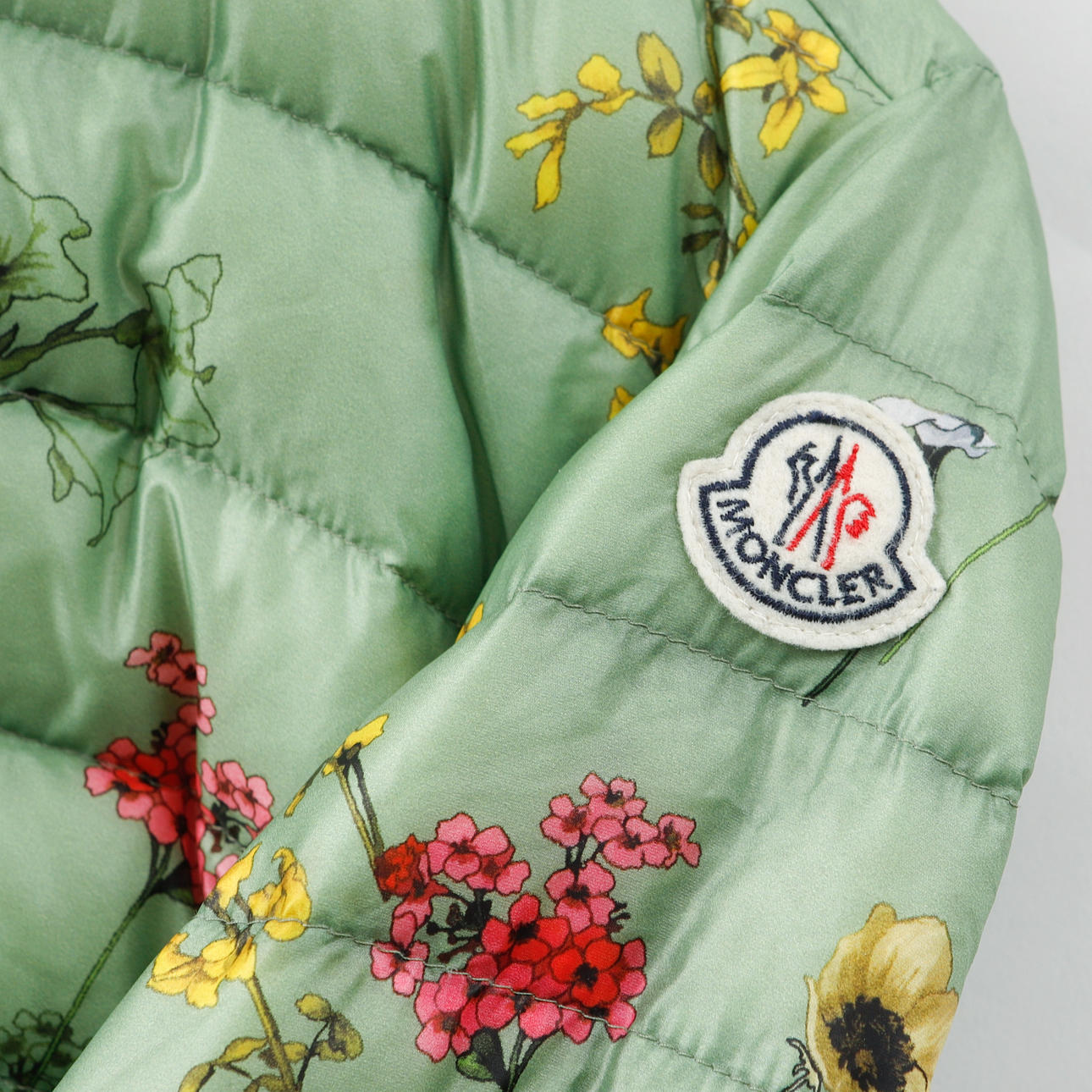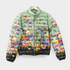 Tunn dunjacka med floralt mönster. Bystvidd ca 90 cm, rygglängd ca 61 cm, ytterärmslängd ca 62 cm.