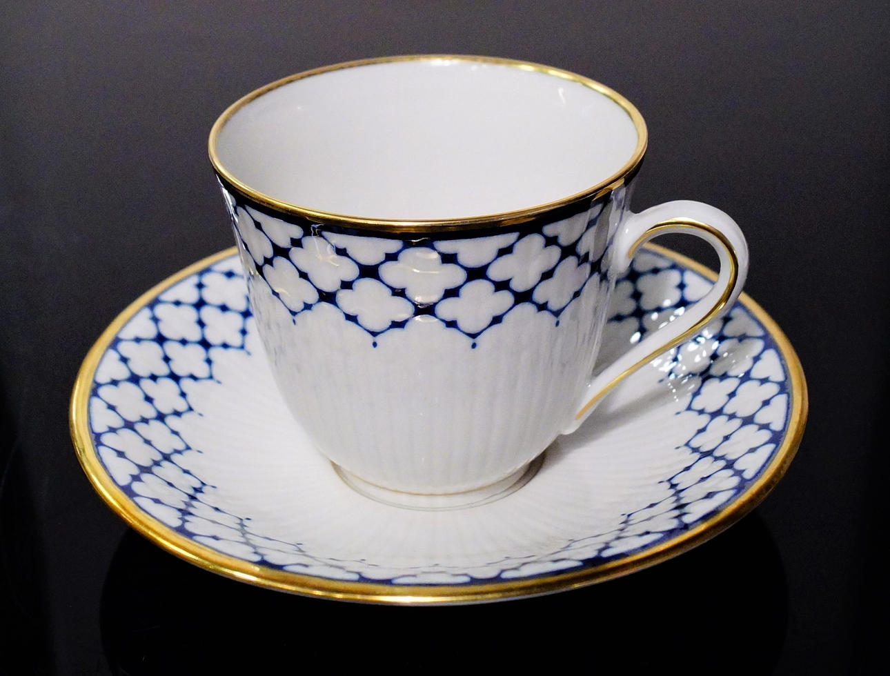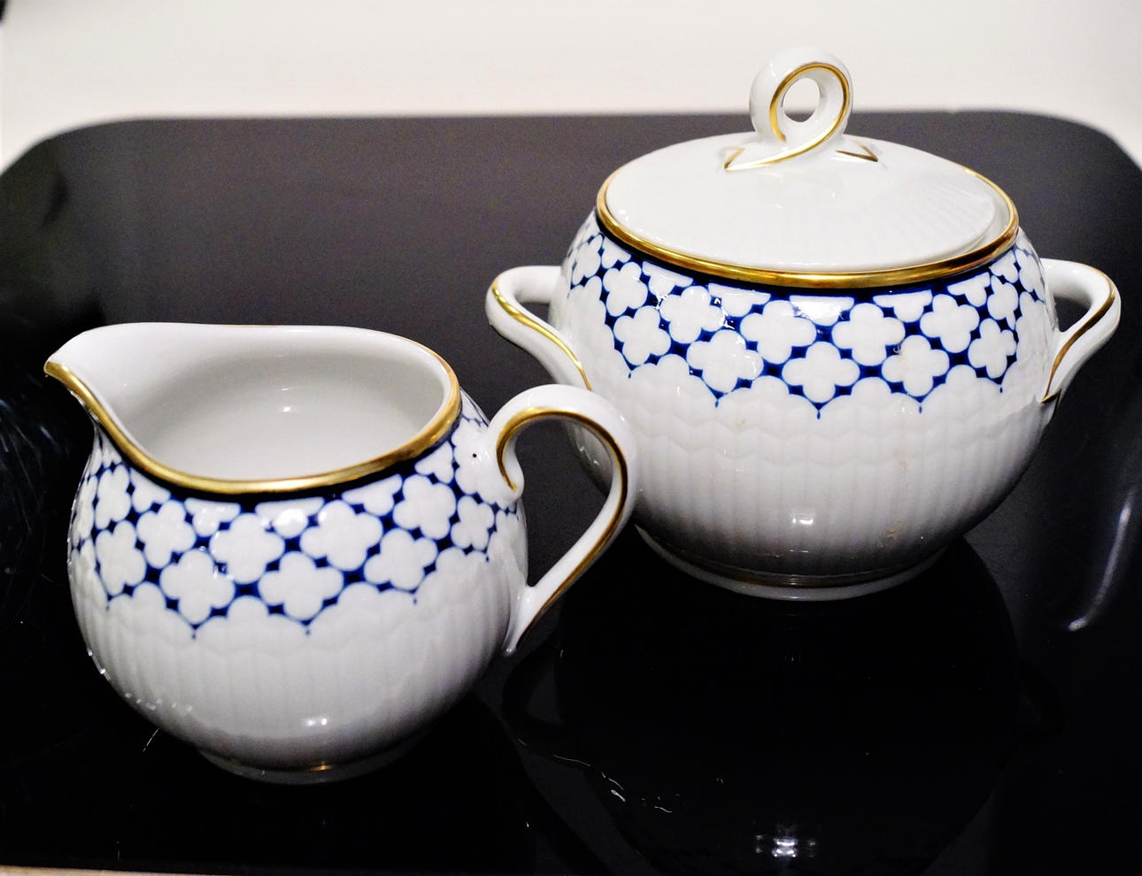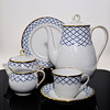 12 st Kaffekoppar med fat. 12 st assietter. 1 st gräddsnipa. 1 st sockerskål med lock. 1 st Kaffekanna med lock.