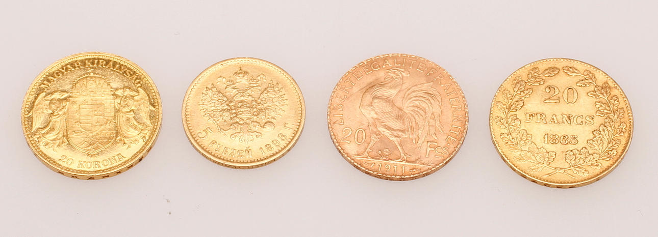 26630. GULDMYNT, 4st, vikt ca 24 gram.