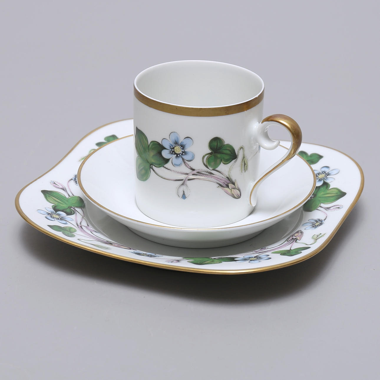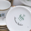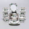 8 koppar med 13 fat höjd 6 cm. 13 assietter storlek 14,5 x 14,5 cm. Sockerskål med lock samt gräddsnipa.