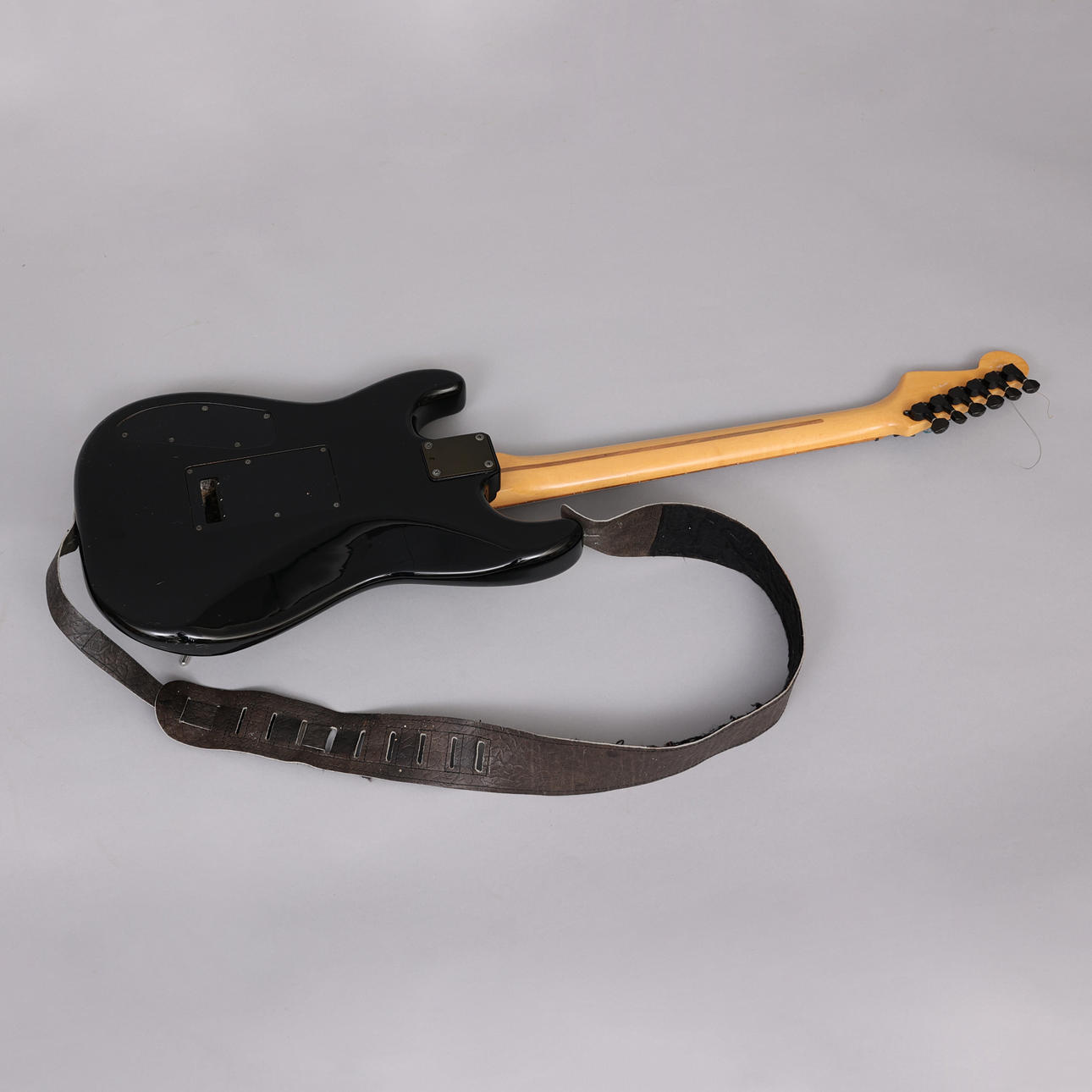 Fender Contemporary Stratocaster, helt i svart, japantillverkad. Längd 99 cm.