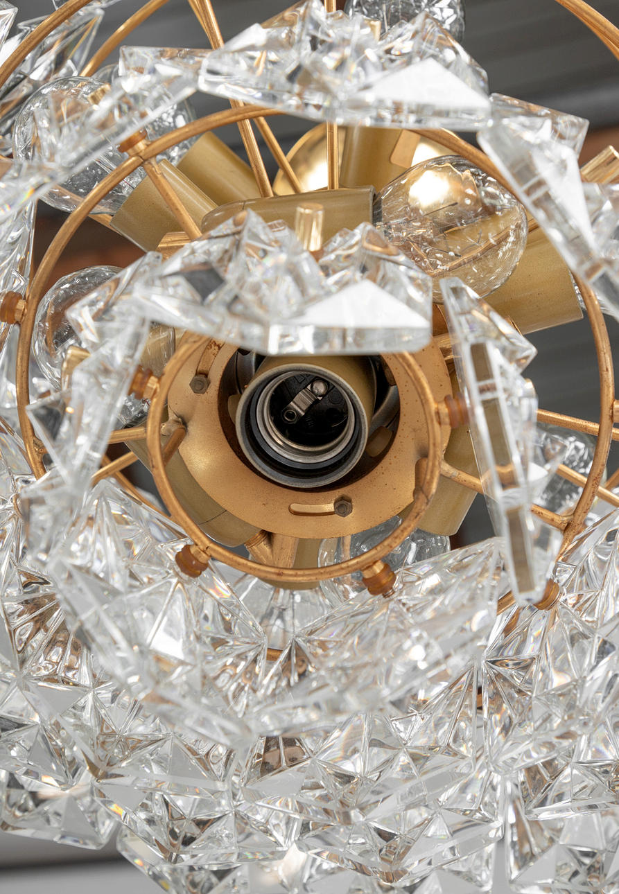 2665966. ljuskrona. Mässing & glas 1970-talet.