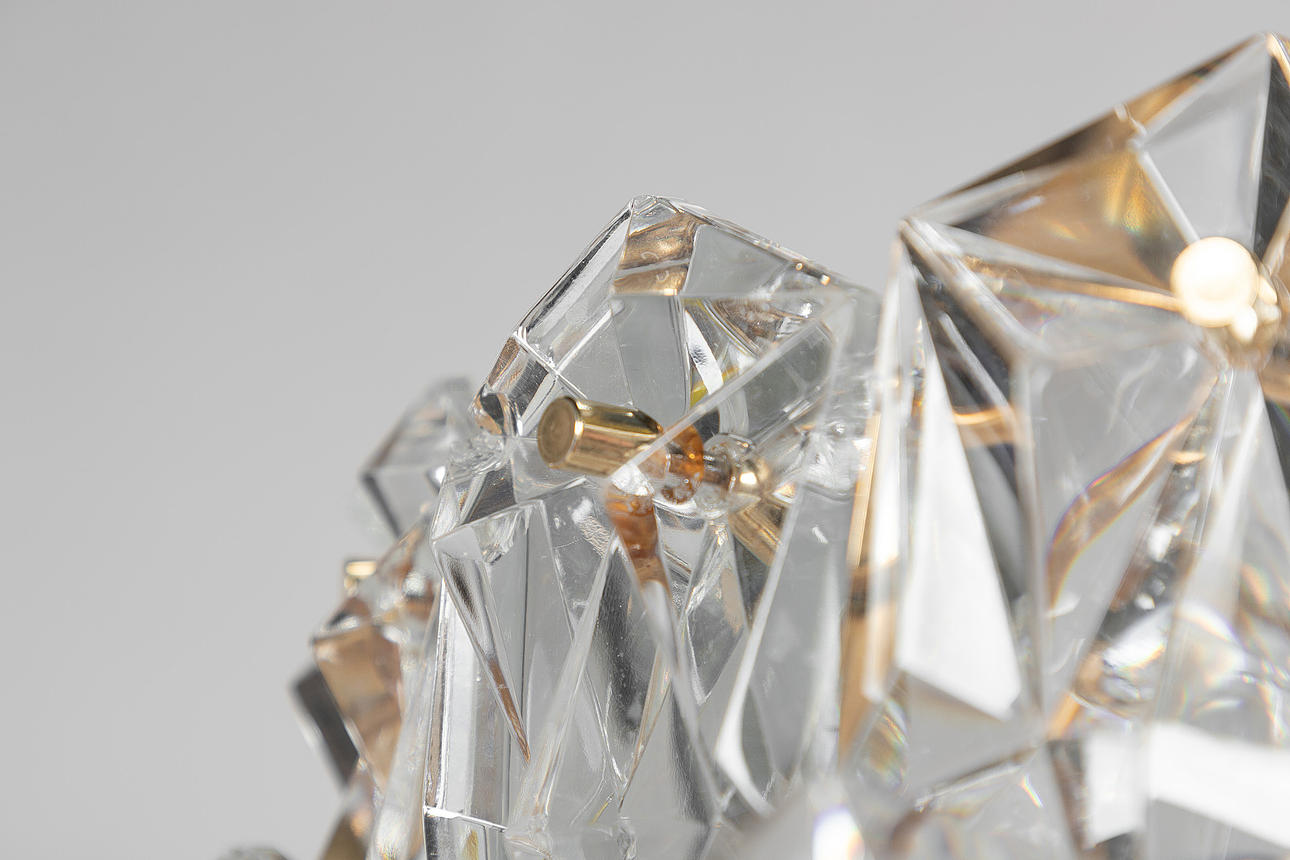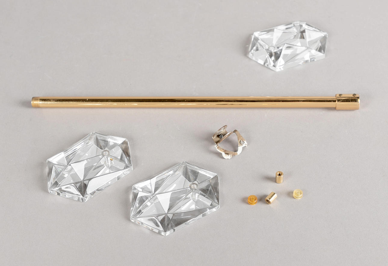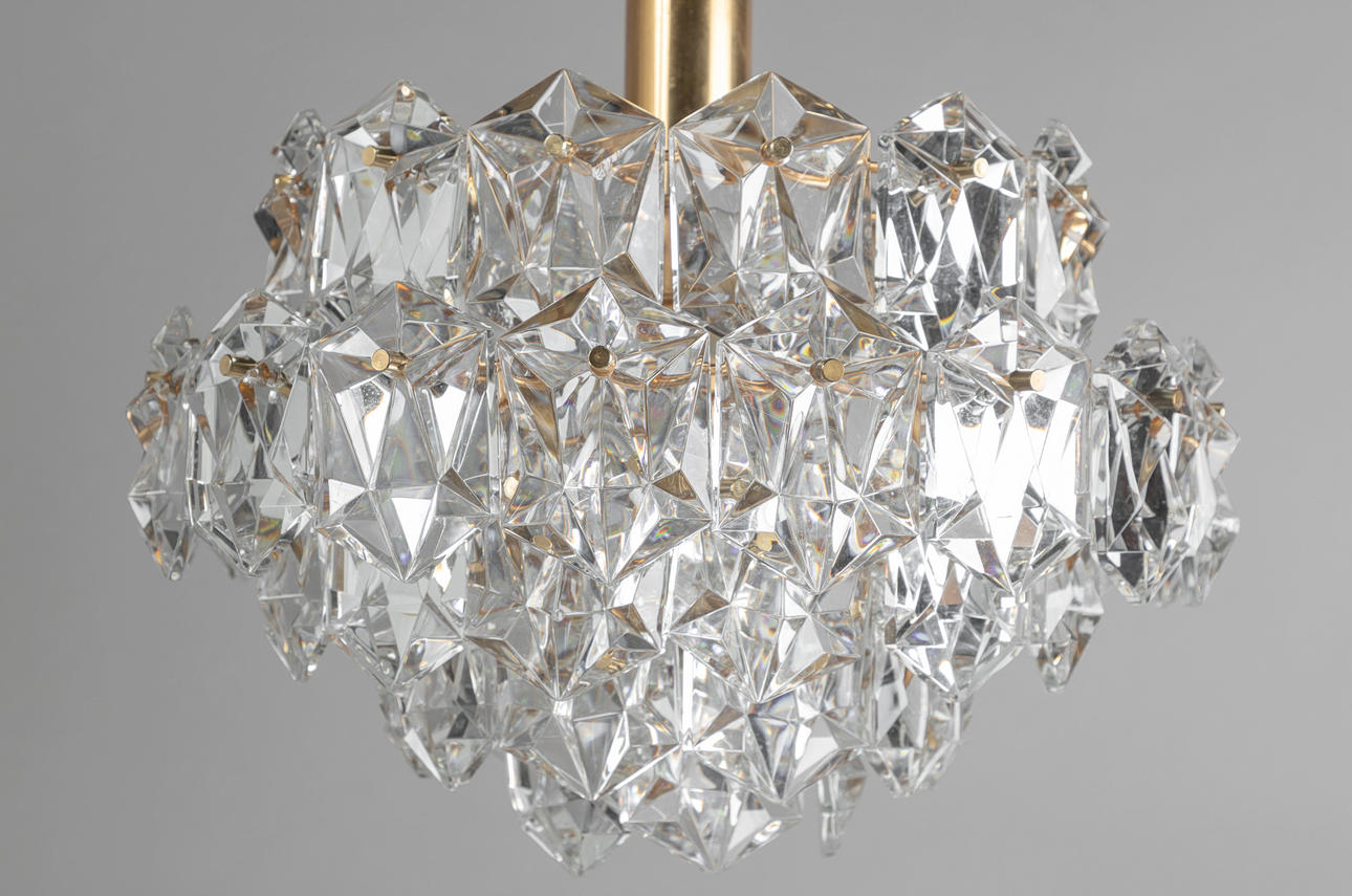 5-vånings ljuskrona med mässingsram och olika skurna glashängen. Totalt 10 brännare.