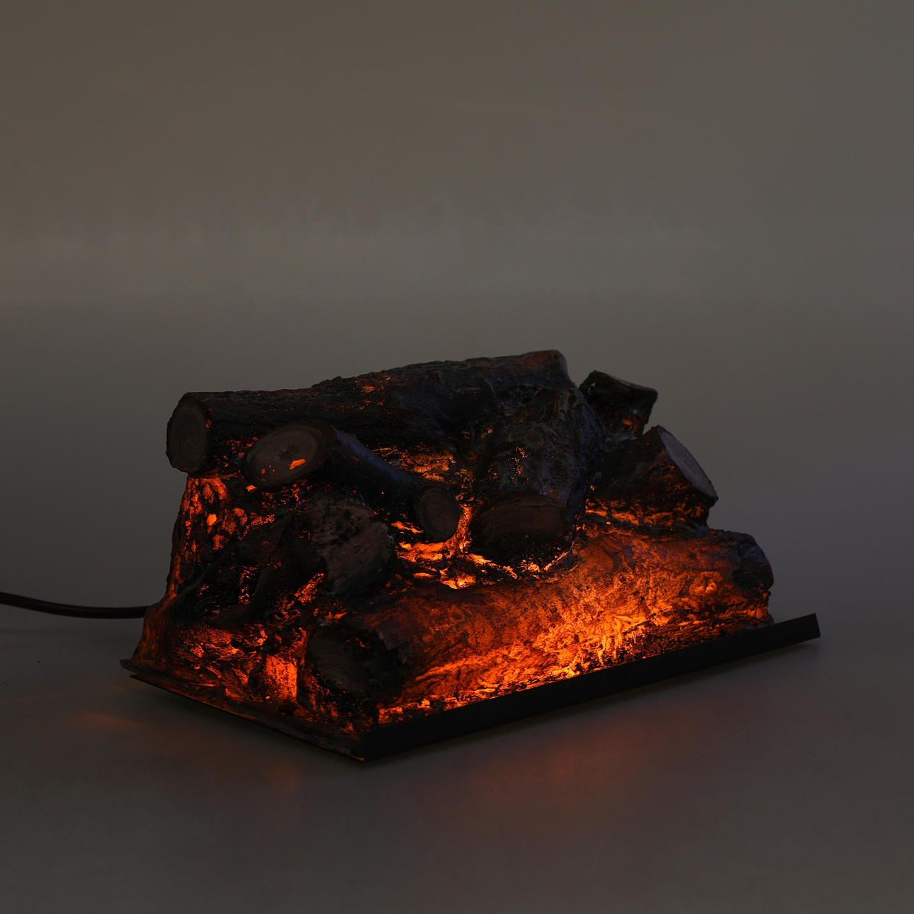 En eldriven dekorationsbrasa, höjd ca 17 cm, längd ca 34,5 cm, djup ca 20,5 cm.